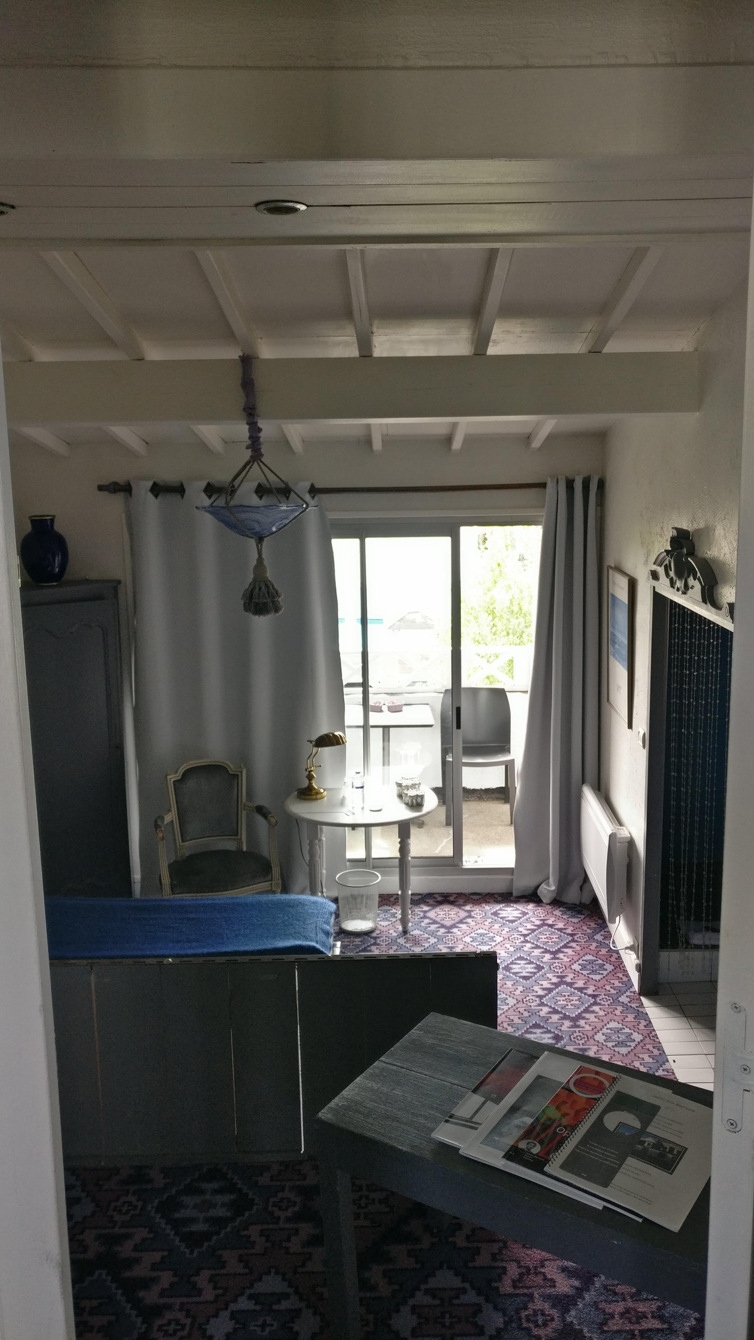 Grosse déception. Points positifs : bien placé à 10 mn à pieds de la plage, parking gratuit à proximité, personnel sympathique Points negatifs : chambre à la décoration affreuse et oppressante. Rien ne va ensemble. Balatum effet carreau de ciments au sol, vieille toile tendue à l ancienne au mur representant des statues, affreuses tables de chevets en plâtre carrelés sur lesquelles sont posees des lampes modernes, immense lustre rempli de toiles d araignées et à la fixation douteuse au dessus du lit, chambre pas insonorisée et chasse d eau très faible. Je n'ai jamais vu une chambre aussi moche et vieillottes. Pourtant on était soit disant surclassés (chambre 24). Cette chambre n apparaît sur aucune photo du site, je partage donc le chef d œuvre.