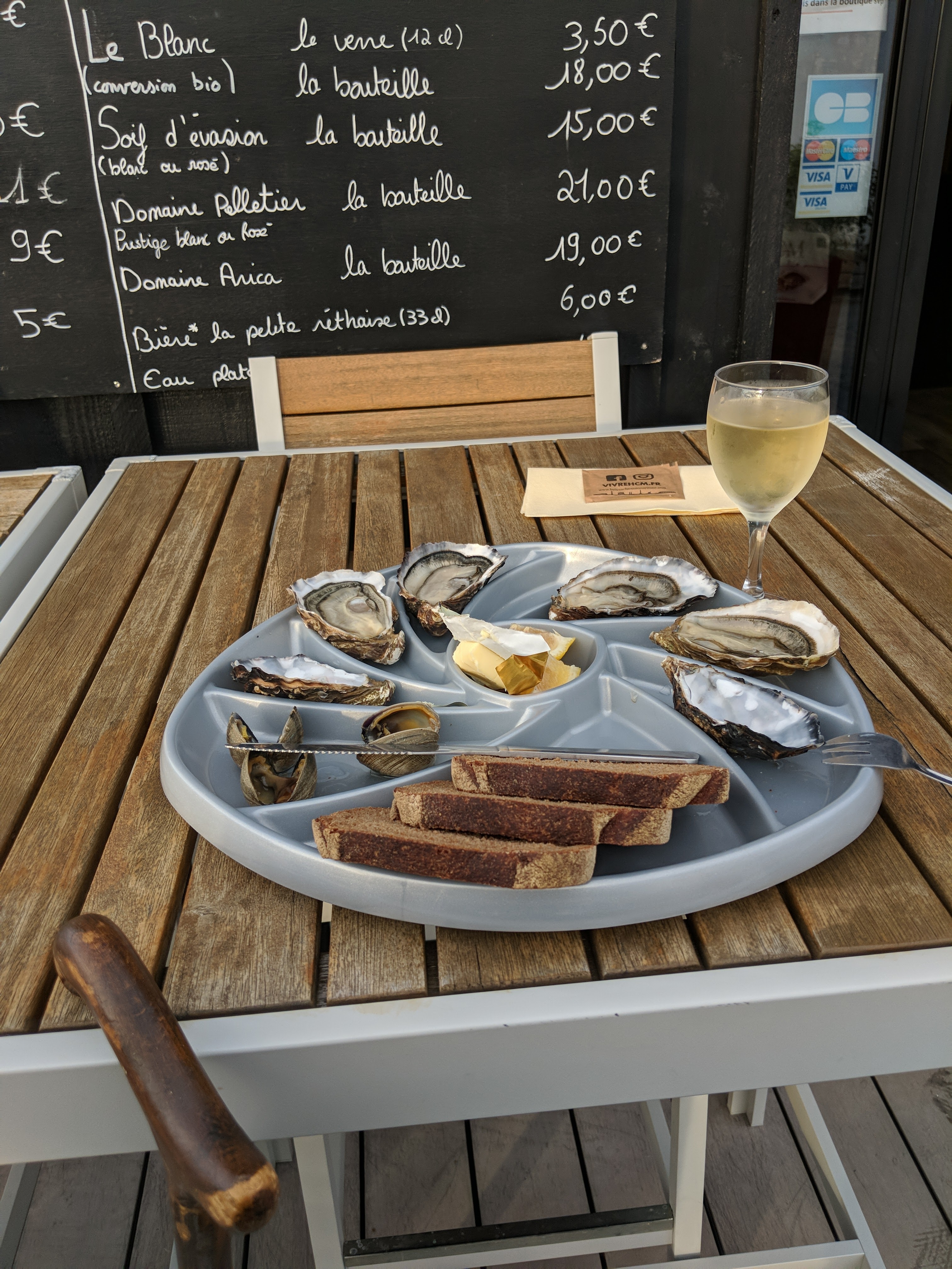 Les huîtres sont très bonnes et le vin blanc de l île de Ré délicieux. Accueil chaleureux et personne souriante. Nous recommandons.