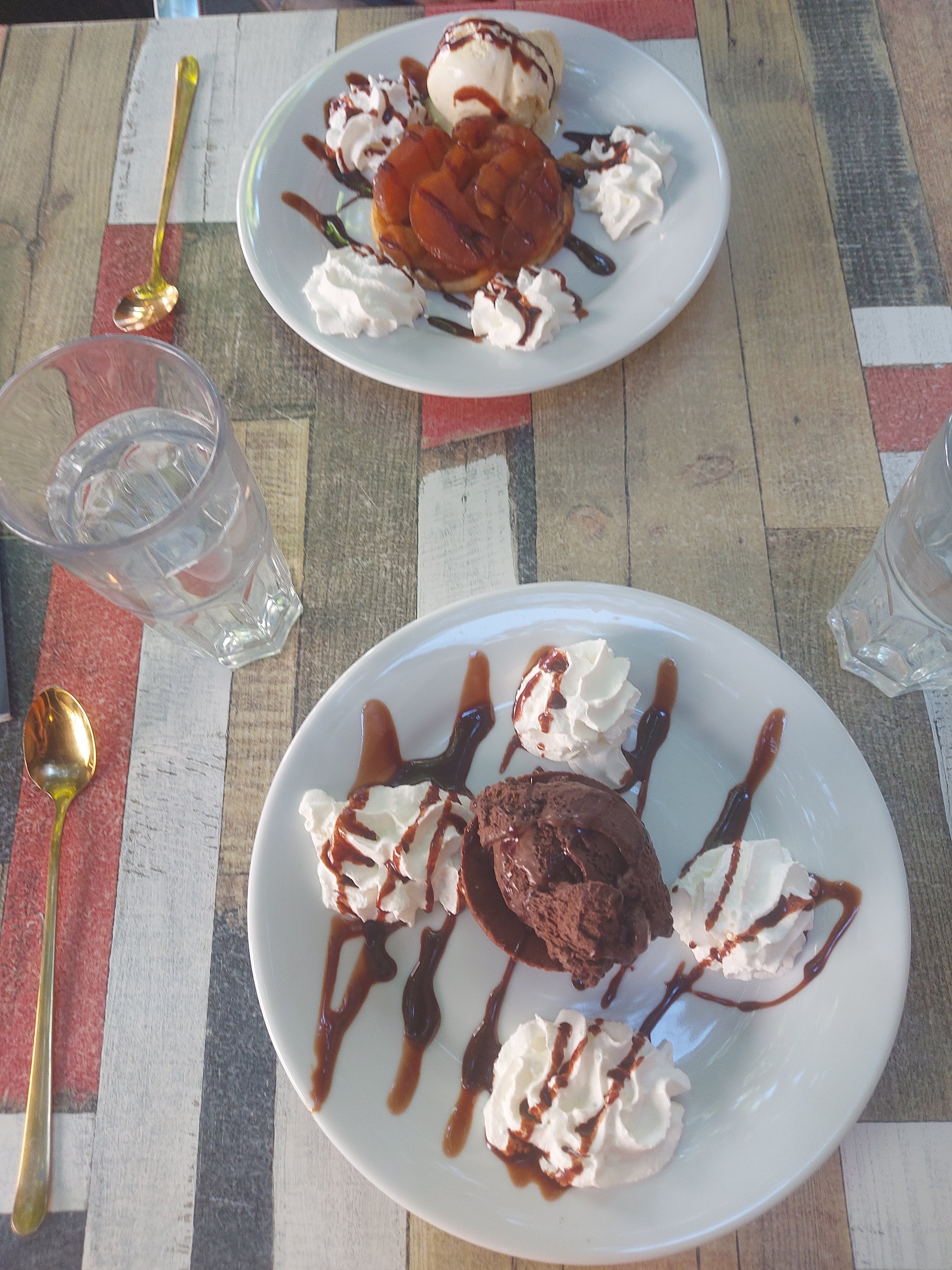 Bon, l’endroit est sympa c’est sur et les serveurs aussi. MAIS j’ai de sérieux doutes sur la cuisine… Nous avons mangé un tartare qui nous rendu malade le lendemain… la crêpe réchauffée au four ???? Dur et cramé!! La glace de mon fils avait du fondre et être ré congelé ??? Pleine de givre et déformé!!! Le pain sec, dur et mal coupé??? Celui d’une ancienne table? Pas vraiment sérieux tout ça. De plus j’ai exprimé gentiment mes remarques mais à part un semblant de gêne ils s’en foutent!