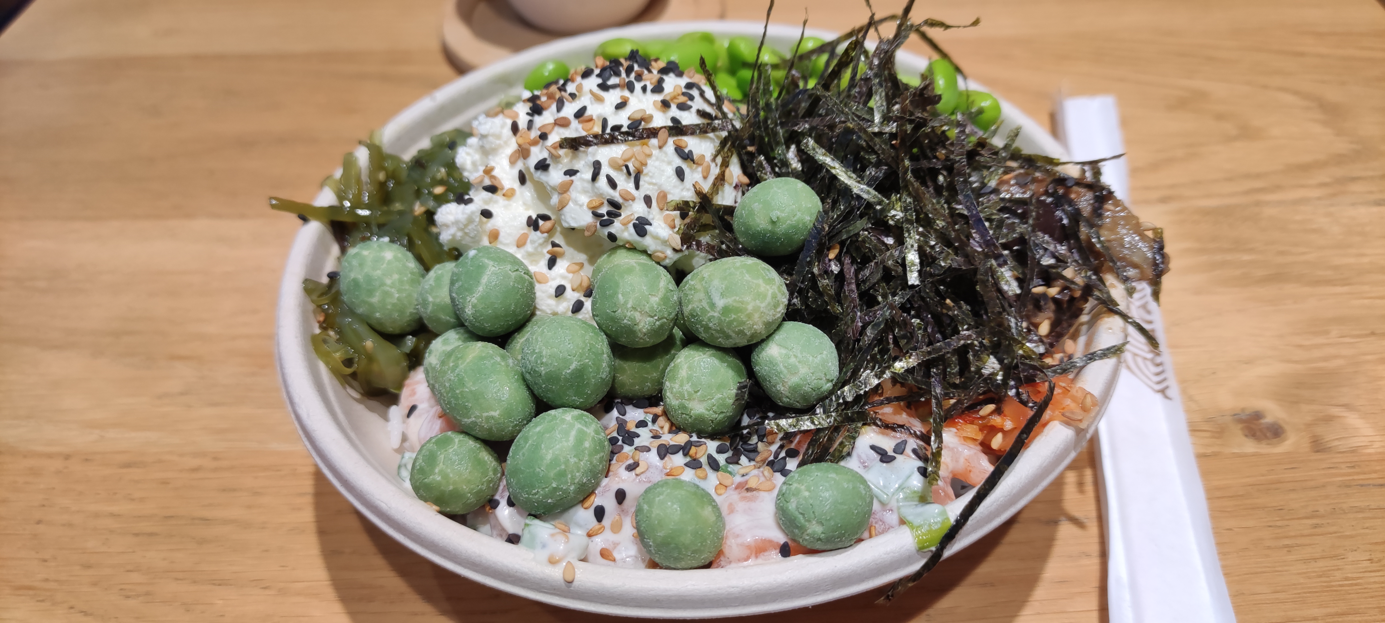 Très bon poke bowl, vu sur le marché très appréciable, serveuse très gentille, je recommande 😊👍