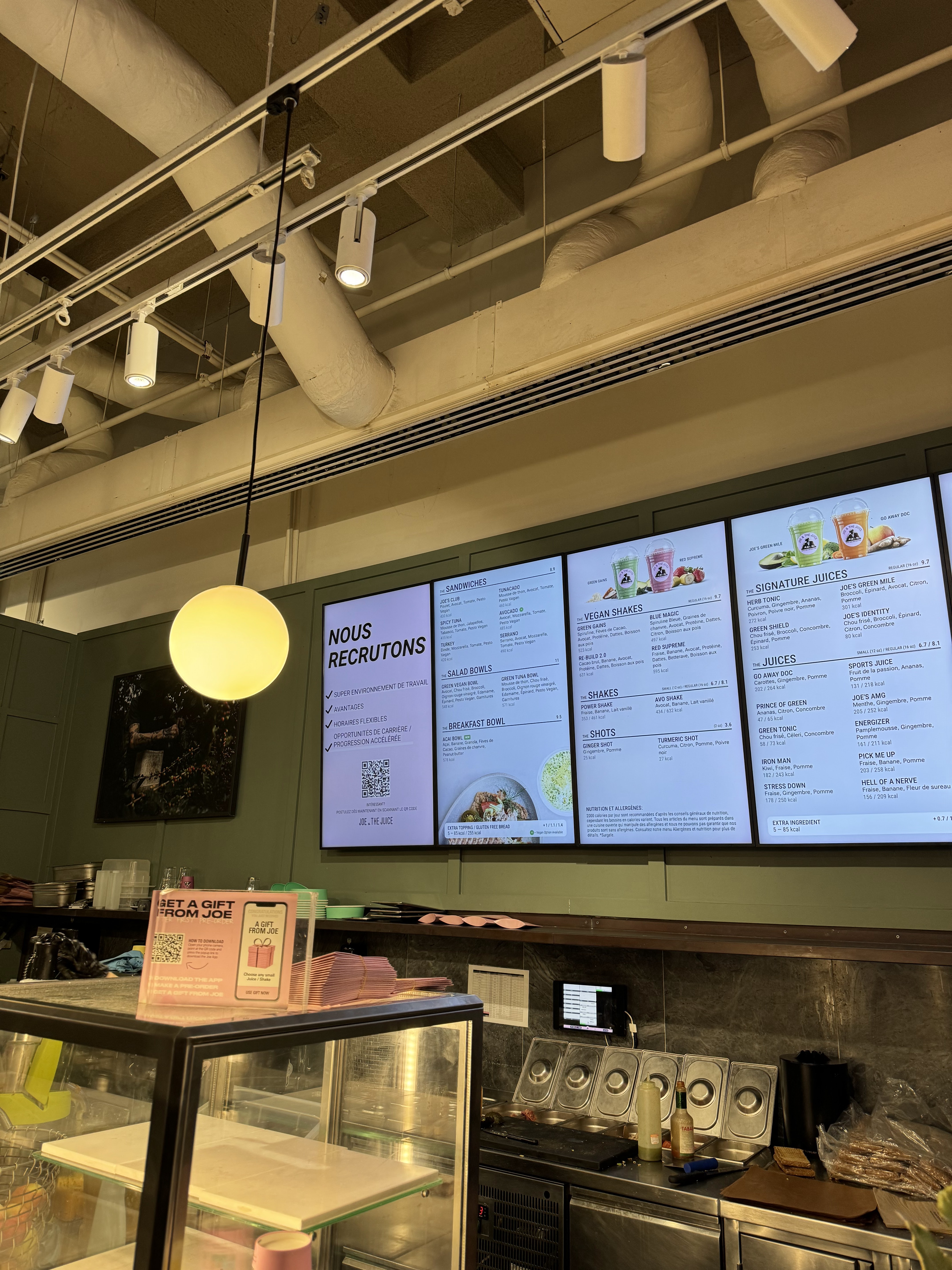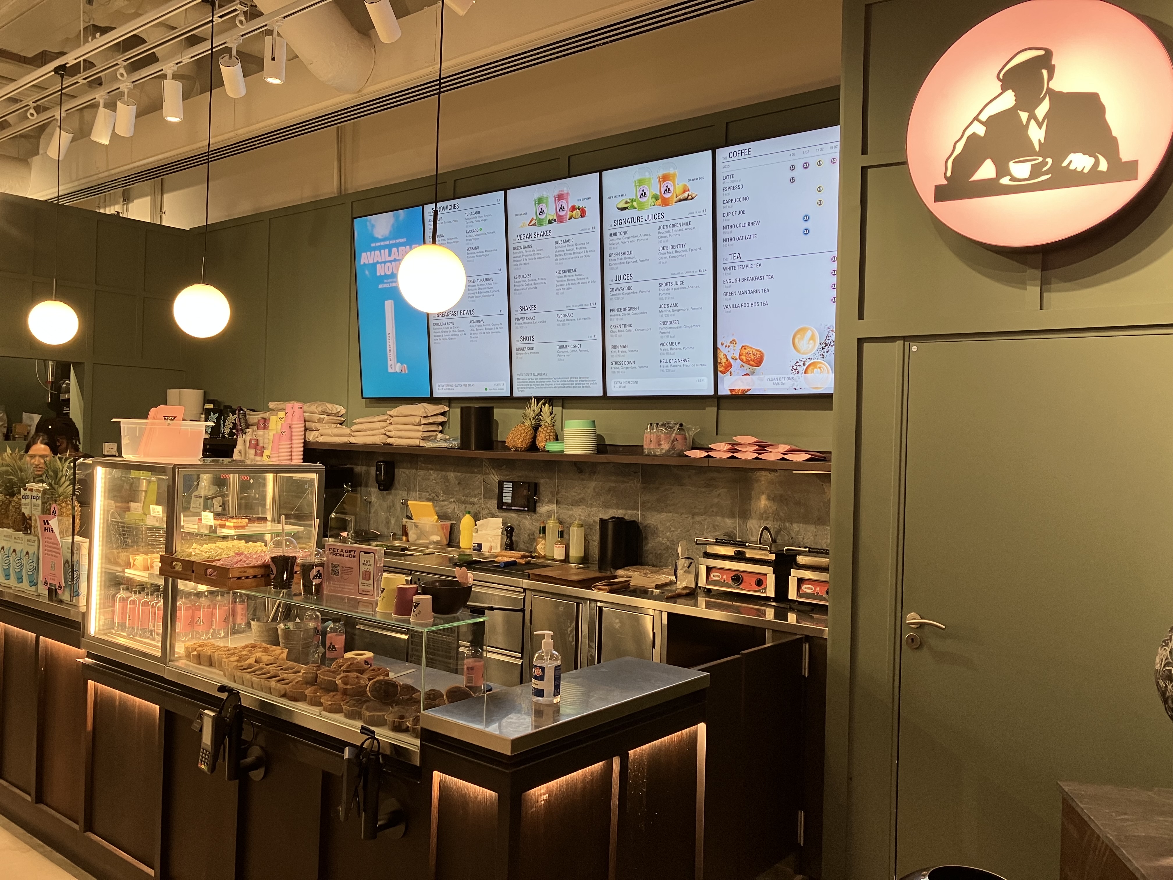 Une petite halte au sous-sol des Galeries Lafayette des Champs-Elysées. N’ayant pas trouvé mon bonheur dans ce « Food Court », qui n’a en fait de Food que son nom… Je décide avec ma compagne de faire une petite cure de vitamines chez Joe & The Juice 🥤. Les boissons préparées à la commande sous nos yeux étaient délicieuses 😋 ! Le service est également aimable. Et l’espace de restauration est plutôt vaste 👍Parfait pour une petite pause 😉