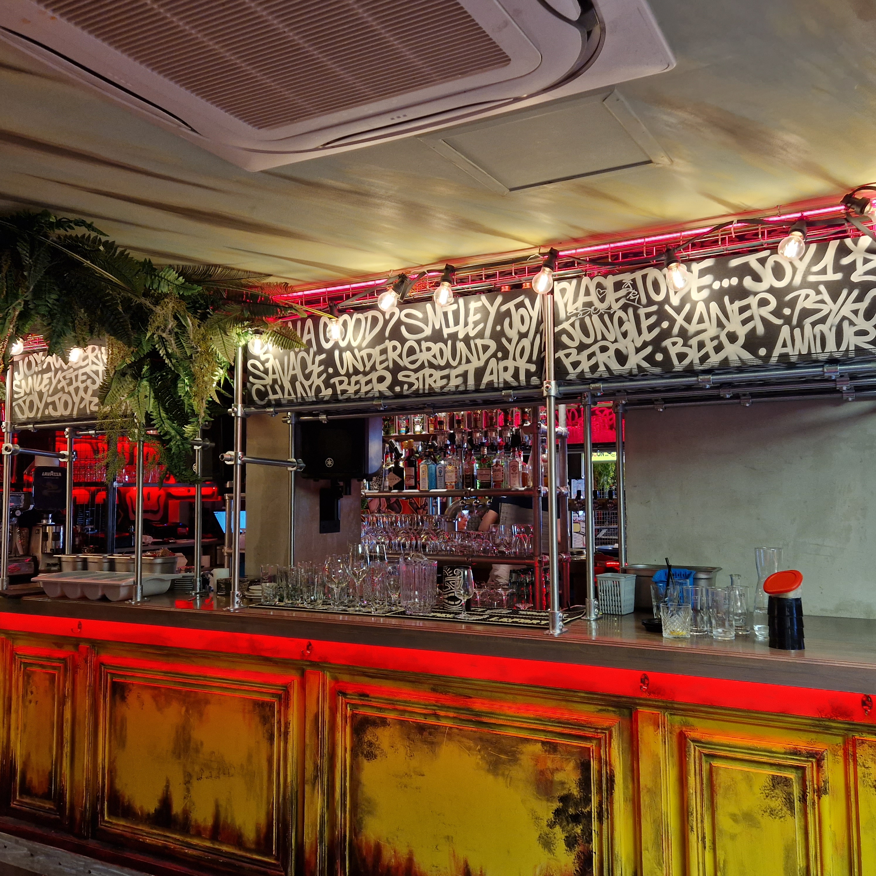 Lieu incroyable niveau déco ! Tout est tagué, c'est stylé ! Large choix de bieres. L'ambiance est sympa, le personnel aussi ! Salle de jeux à l'étage (fléchettes, billard, bornes d'arcade et baby-foot)
