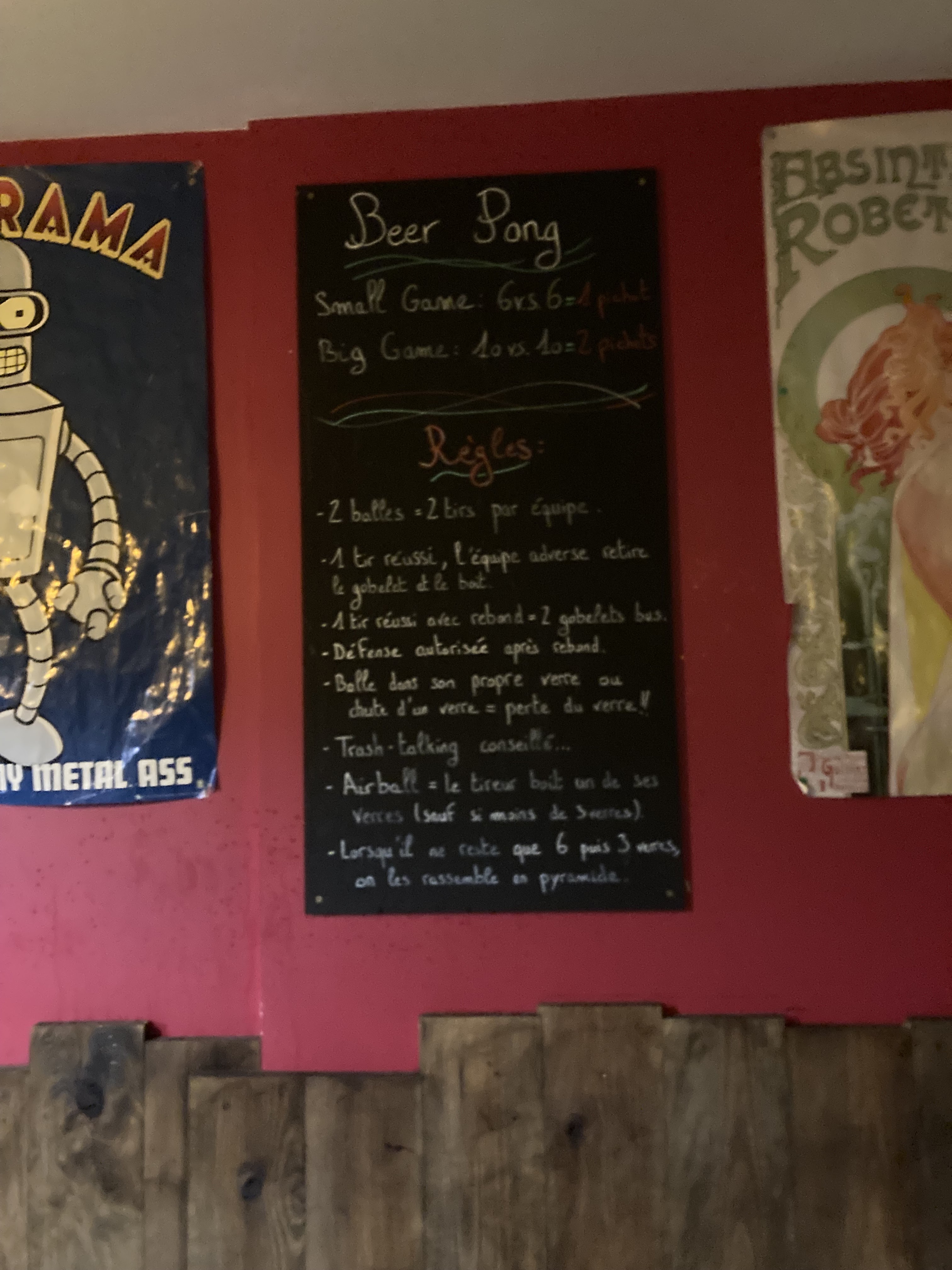 Ambiance pub! Avec des cocktail originaux et une bière du moment fruitée! Beerpong, shoots il y a de quoi s'occuper!!