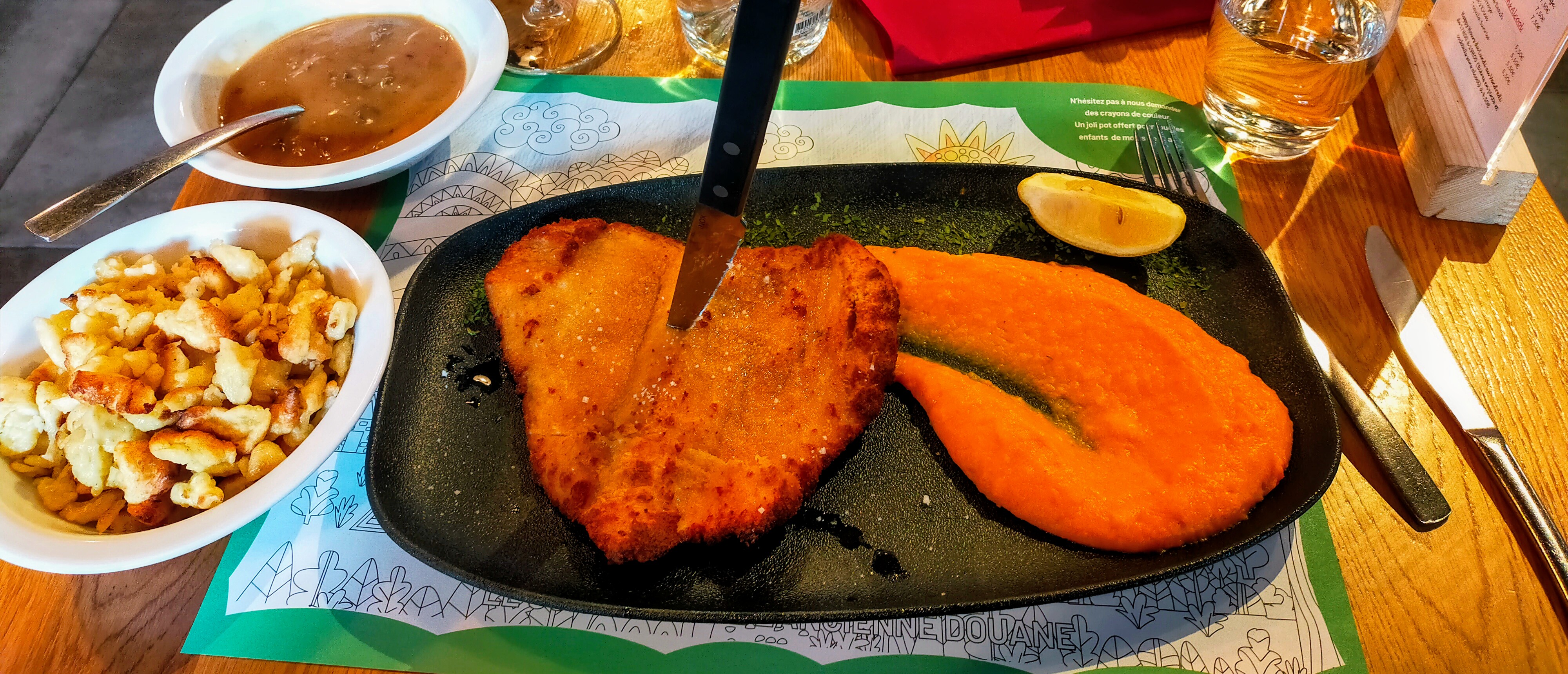Les serveurs sont agréable, à l'écoute. Nous étions un groupe de 15 personnes et avons tous été déçus de nos plats : - Cordon bleue pas cuit. Escalope de poulet minuscule, d'autres plats sans goût... Nous avons tous été déçus de nos plats. Nous étions déjà à l'ancienne douane à Haguenau il y a quelques années pourtant les plats étaient très bons. Nous ne reviendrons pas. ps: une remise de 50% sur le cordon bleue pas cuit.