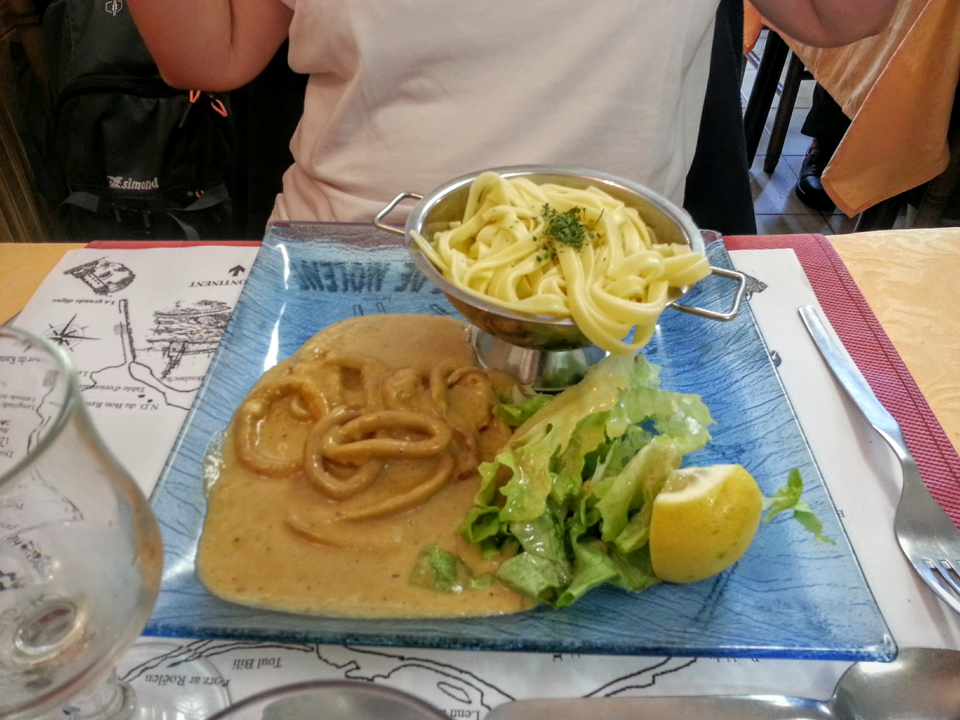 Heureusement nous avons réservé à l'avance et arrivés de bonne heure car le resto fait le plein. Très bon ragoût de saucisse de Molène. Nous avons pu laisser notre petite valise pendant notre visite de l'île c'était sympa .