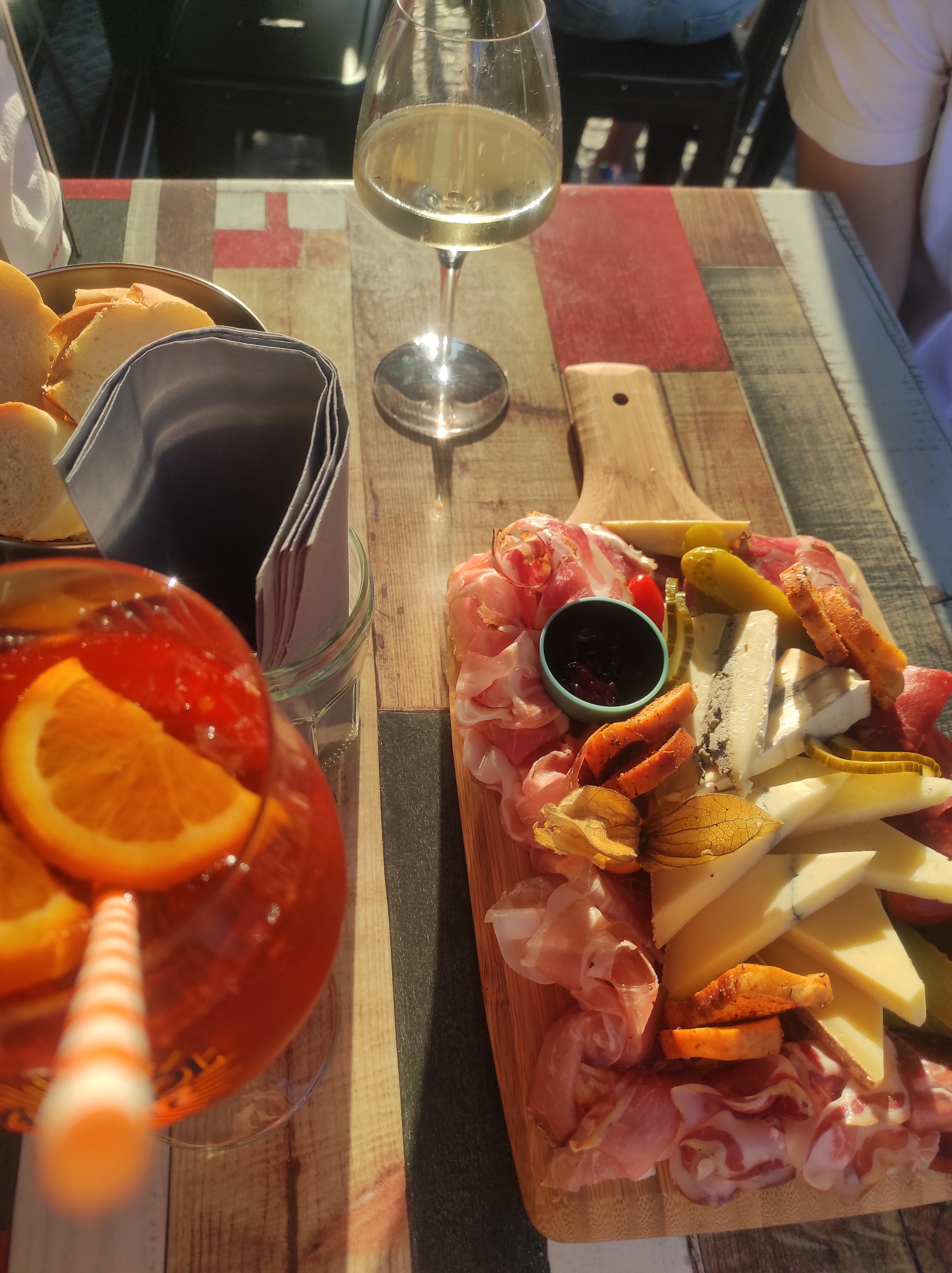 Très bon accueil Bon ambiance et deco sympa Nous avons partager une maxi planche charcut fromage avec un rosé bien frais. C était juste parfait ! Nous recommandons