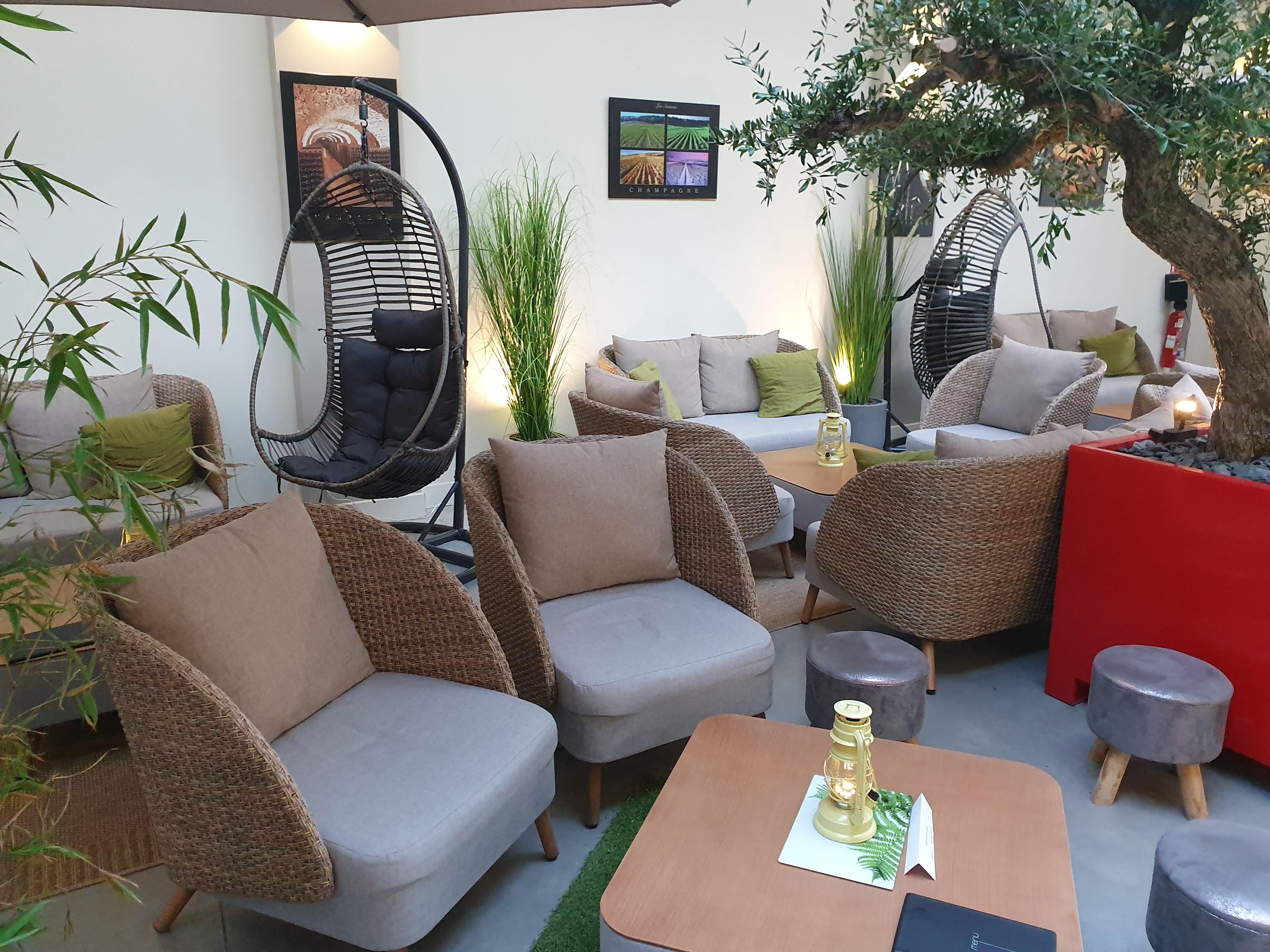 Accueil au top . Siège pour se balancer j'adore. Les planches sont super bonnes et les champagnes aussi.
