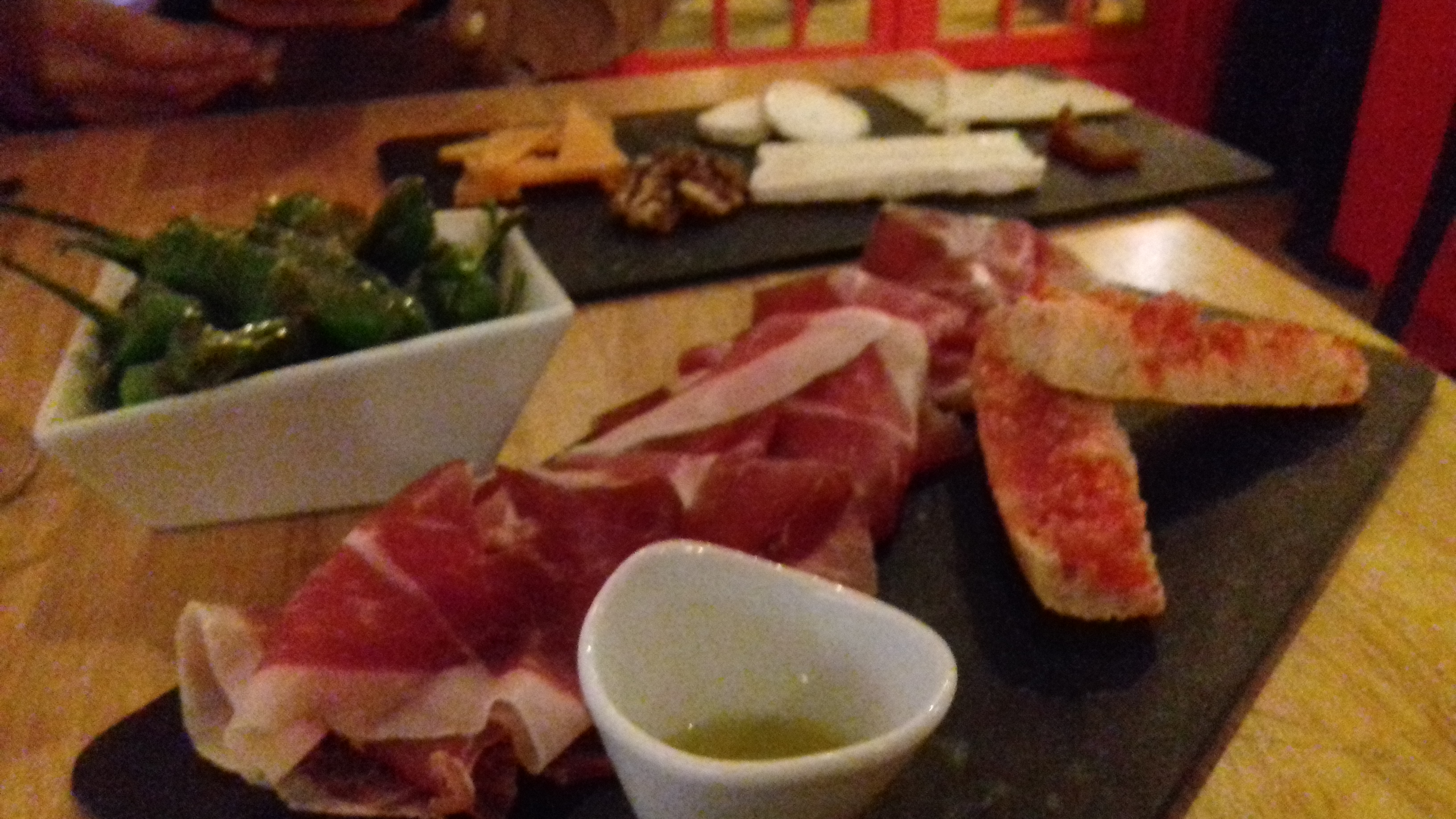 Le lieu n'est pas très grand et divisé en deux parties avec l'une au sous sol. Toutes les assises ne sont pas toutes confortables (tabouret, tables hautes ou crapaudine en fonction). La carte est composée de tapas,( patatas bravas, tortilla, croquetas...) charcuterie, fromage et d'une carte des vins. En conclusion la cuisine est correcte, le lieu peut être un peu bruyant mais le personnel sympathique et au petit soin.