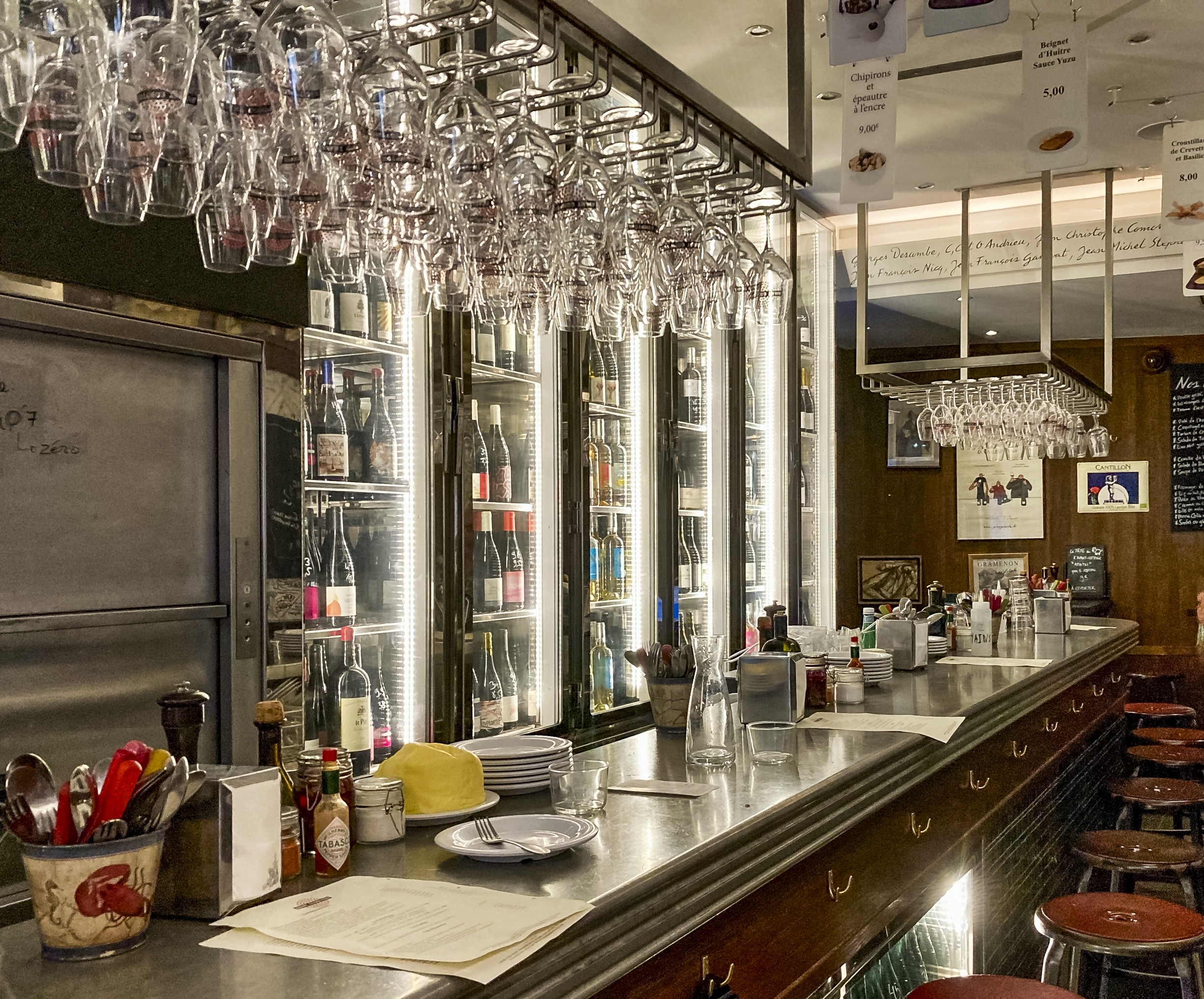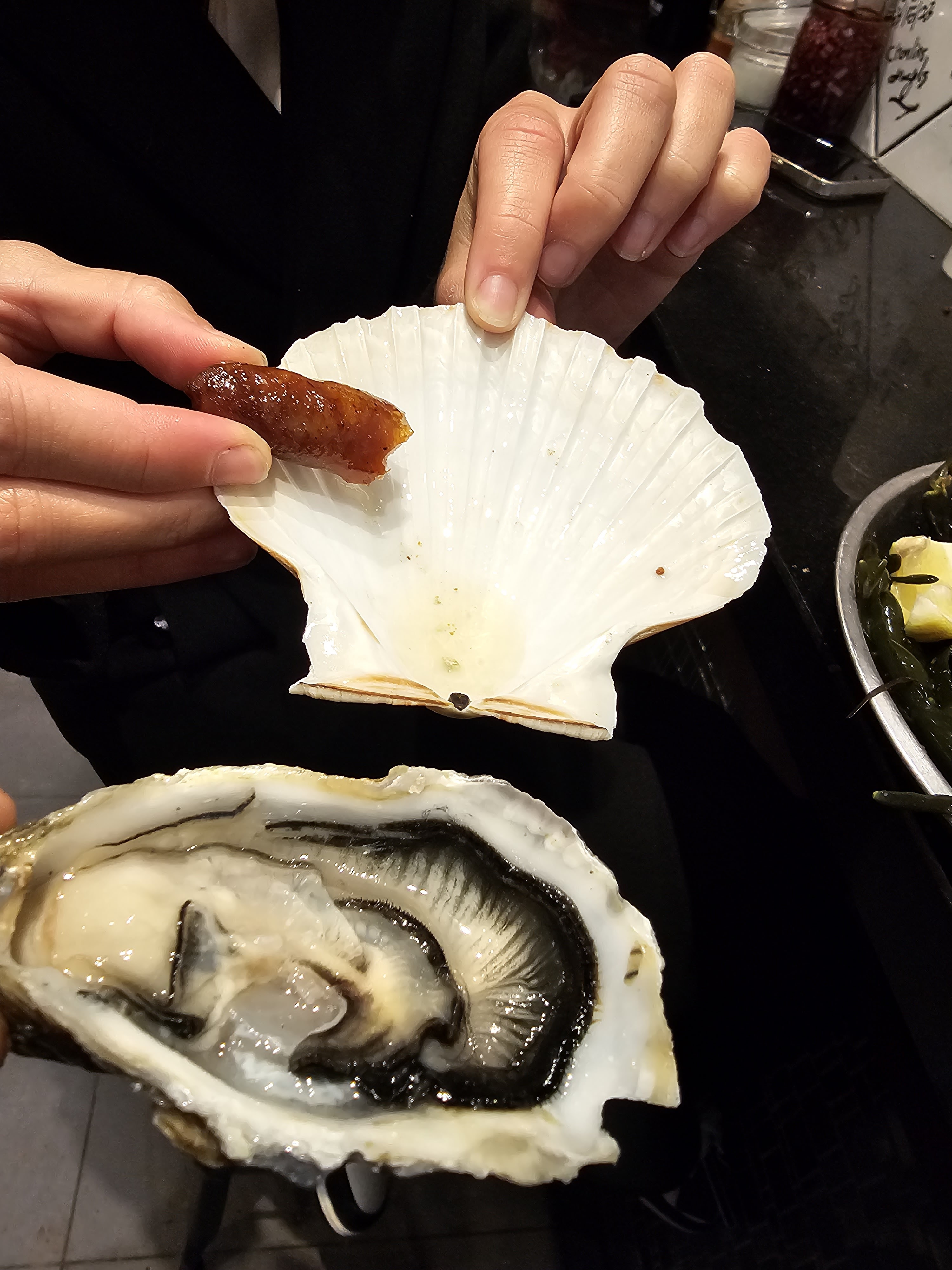D’excellentes huîtres servies par Éric ou Luis, tous deux adorables. Une superbe sélection de vins natures. Bref, toujours un super moment au comptoir