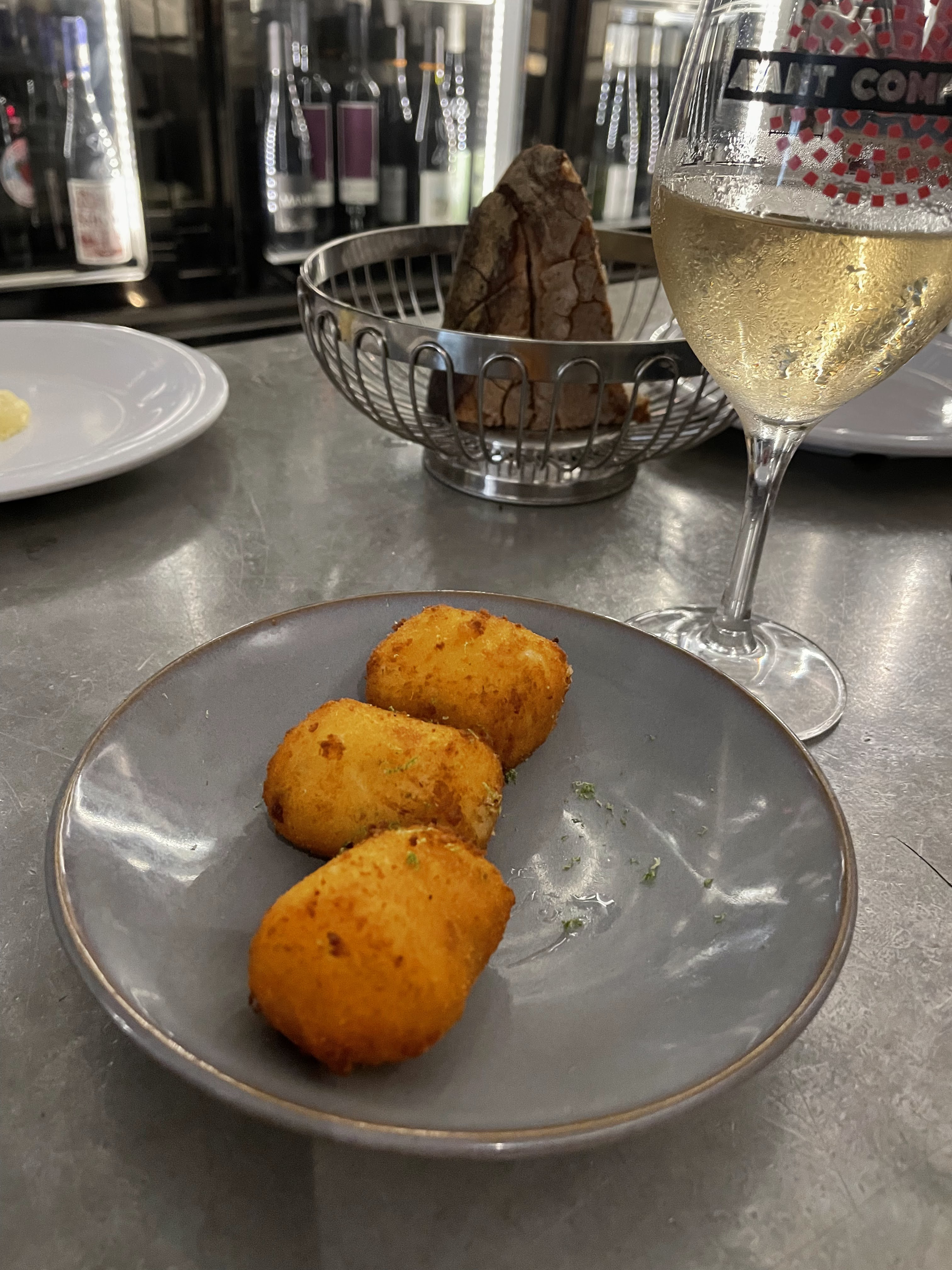 Le rapport qualité-prix de cet endroit est imbattable. Très bonne sélection de vins, pain et beurre addictifs, huîtres fraîches, croquettes excellentes, foie au top dans un bar avec une très bonne ambiance. Très recommandable.