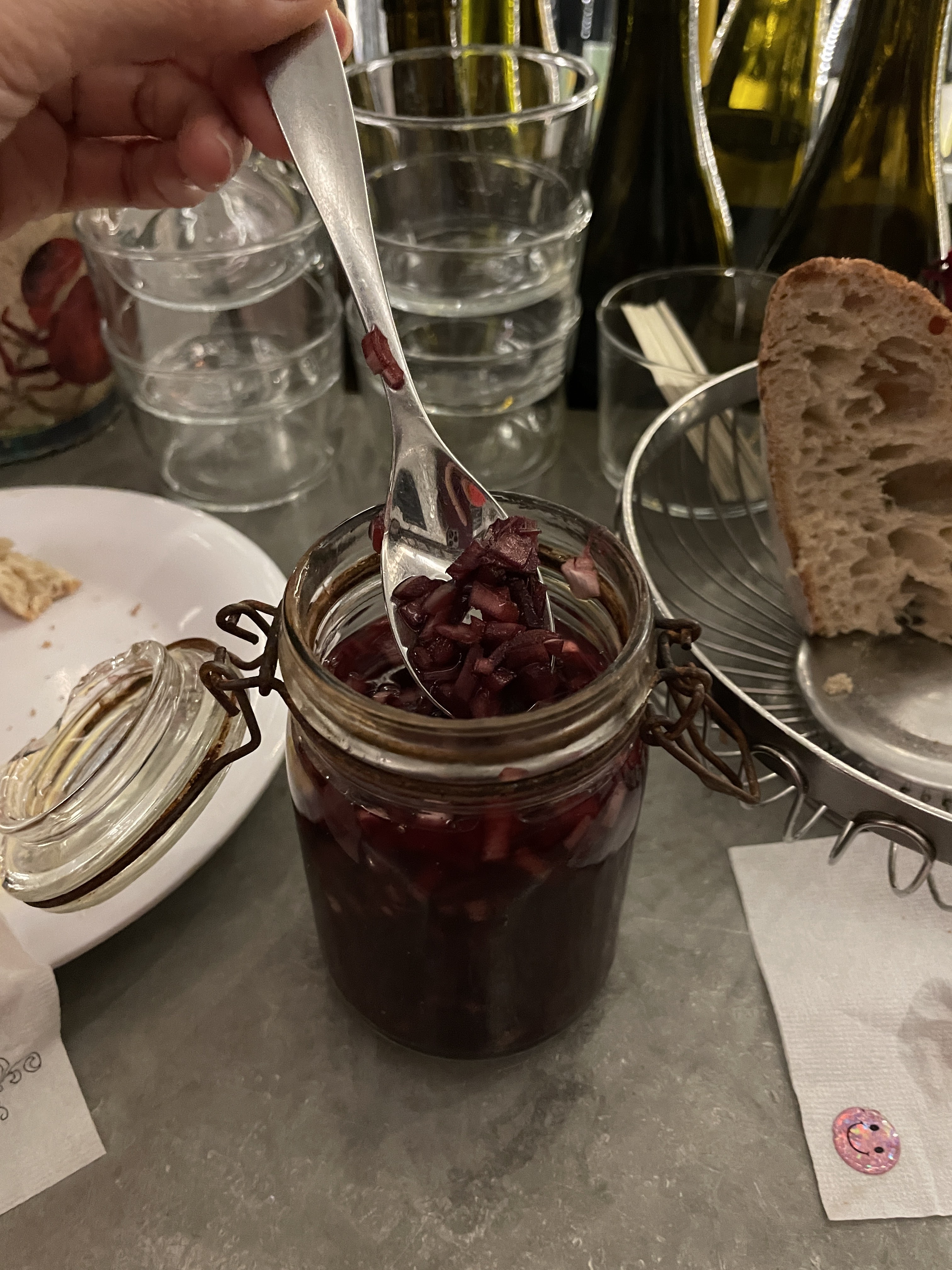 La nourriture et le vin sont tout simplement fantastiques, vous ne pouvez pas vous tromper avec tout ce que vous commandez. Il y avait un peu de monde et de bruit, mais l'ambiance était géniale et c'était amusant de partager notre nourriture et nos boissons avec des inconnus.