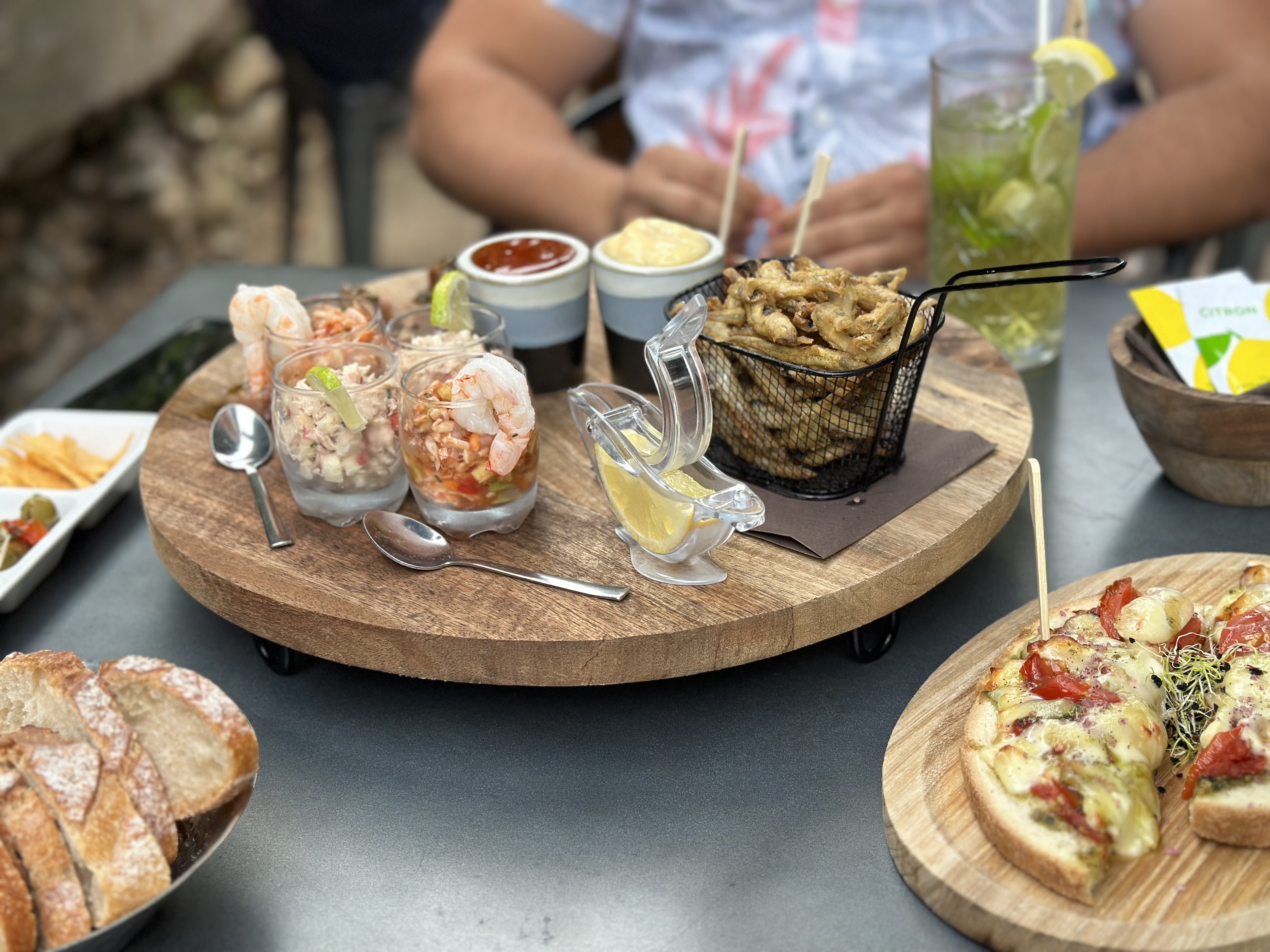 Ambiance très sympa, on a passé un bon moment. On a pris une planche avec de la friture, des calamars fris, du saumon, des accras, tout était bon et en quantité suffisante pour 2. Petit bémol sur la planche de mignardises sucrées que j'ai moins aimé. Service au top , les deux serveurs sont sympathiques et efficaces. En résumé : Une très bonne soirée. À refaire.
