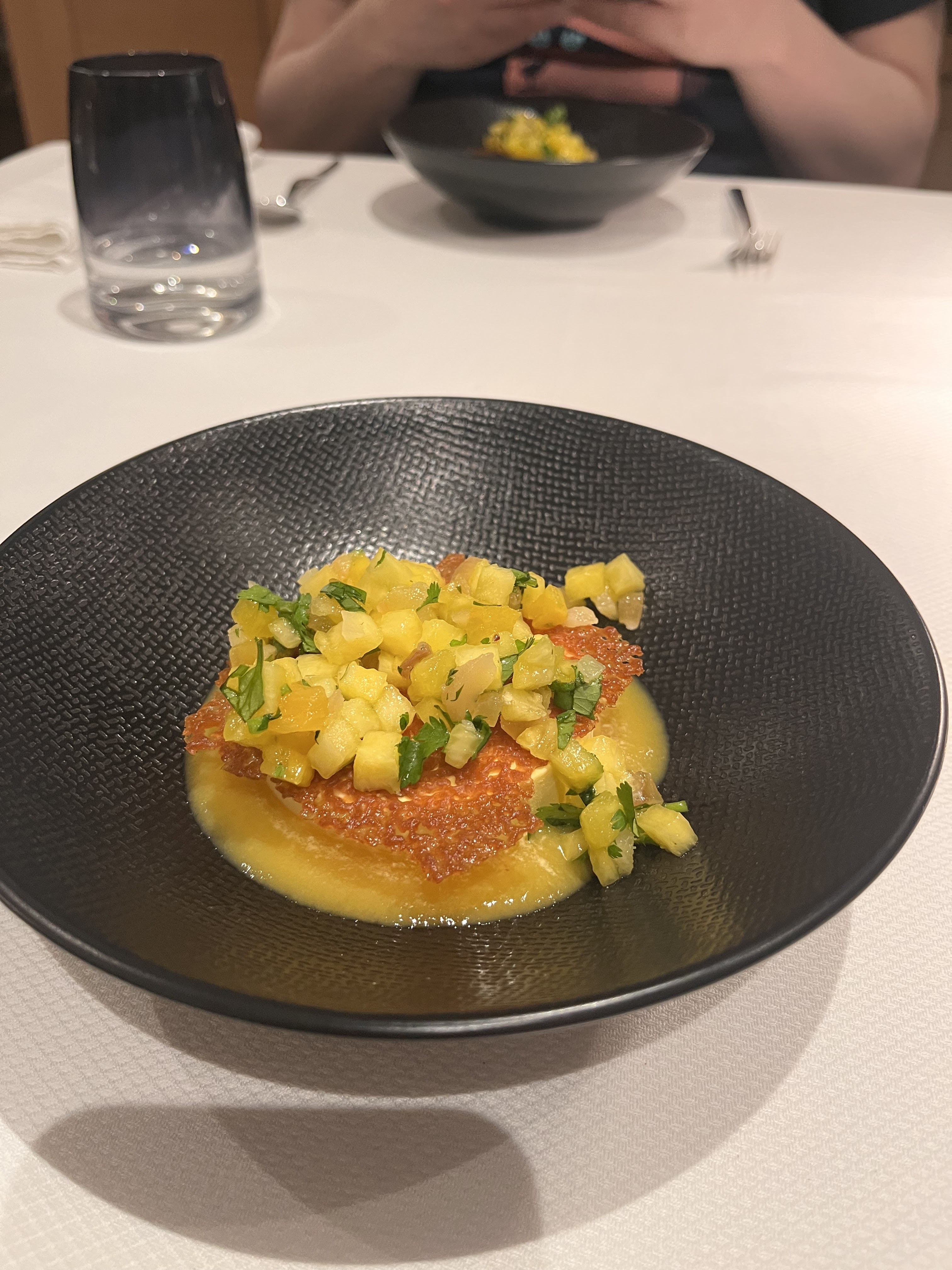 Très bien au niveau cuisine et présentation par contre le service demande à être plus professionnel et une petite musique de fond donnerait un peu plus de charme à un cadre sympa mais un peu froid