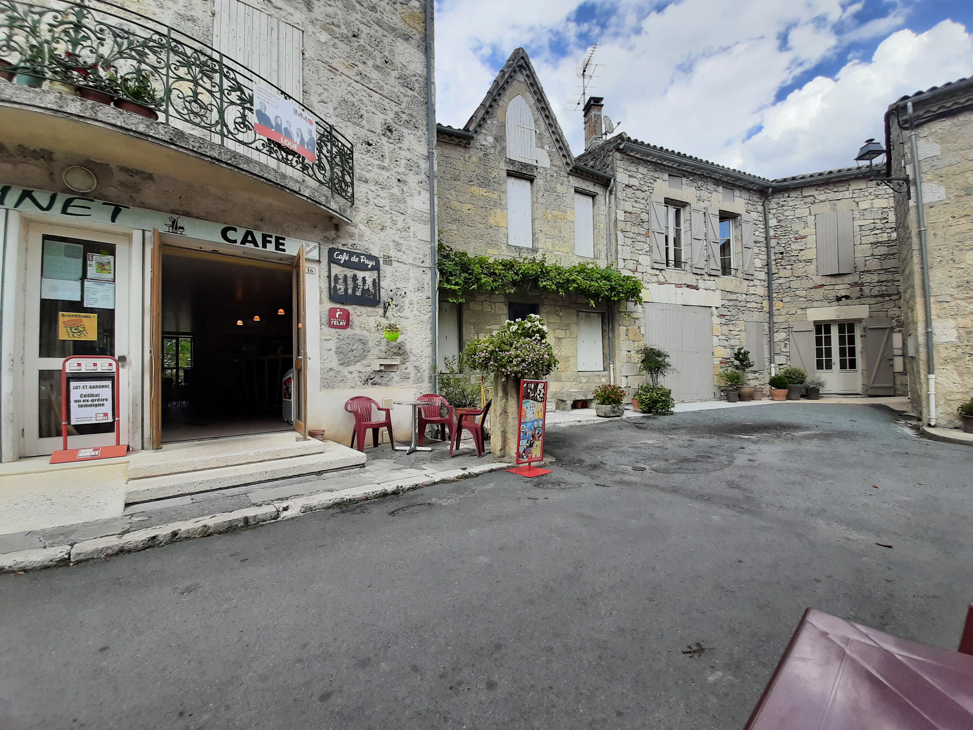 Joli petit bistrot sur la place du village de Prayssas.