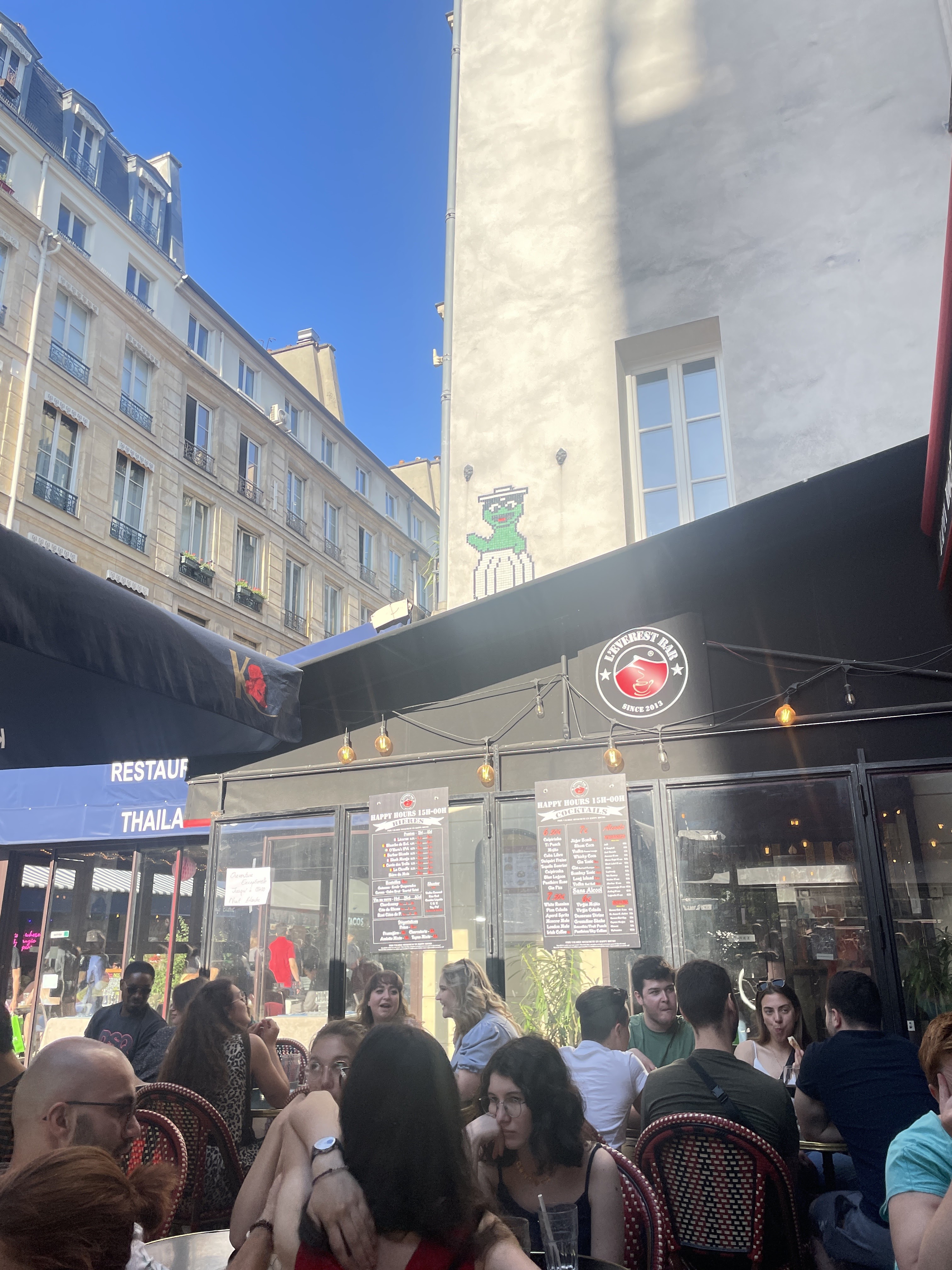 Juste un pot entre 2 potes en fin de journée, en ce dimanche. C'est l'été, le bat est blindé (plein de monde). Essentiellement la jeunesse parisienne et de banlieue, avec des serveurs, au top, efficaces et rapide. Un peu bruyant... quand la bâche est baissée par temps de pluie ☔️ ou de soleil fort ! On y reviendra pour sa bonne bière 🍺 !