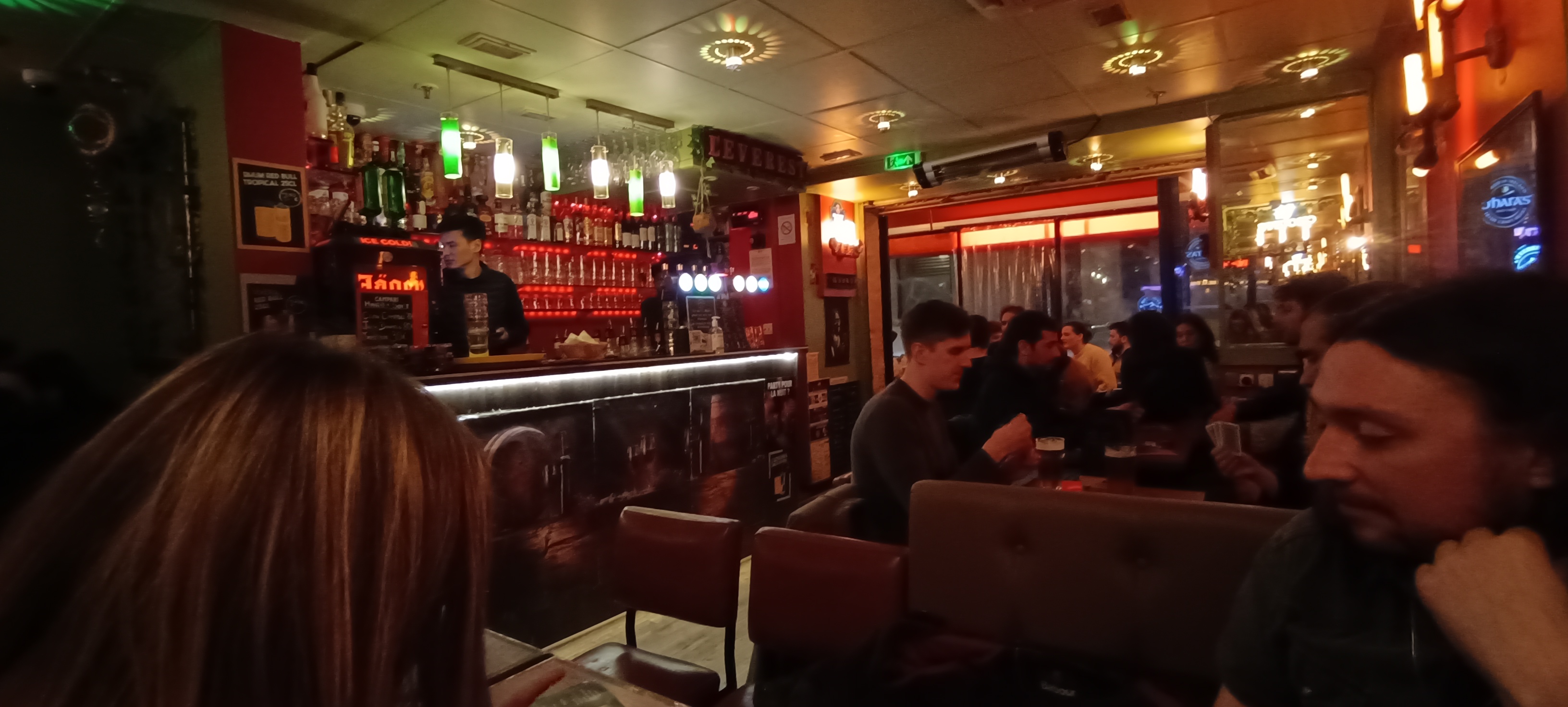 Bar pas cher et staff sympa / la guerre pour aller au WC après quelques pintes et terrasse bruyante si vous cherchez du calme passez votre chemin, sinon je recommande