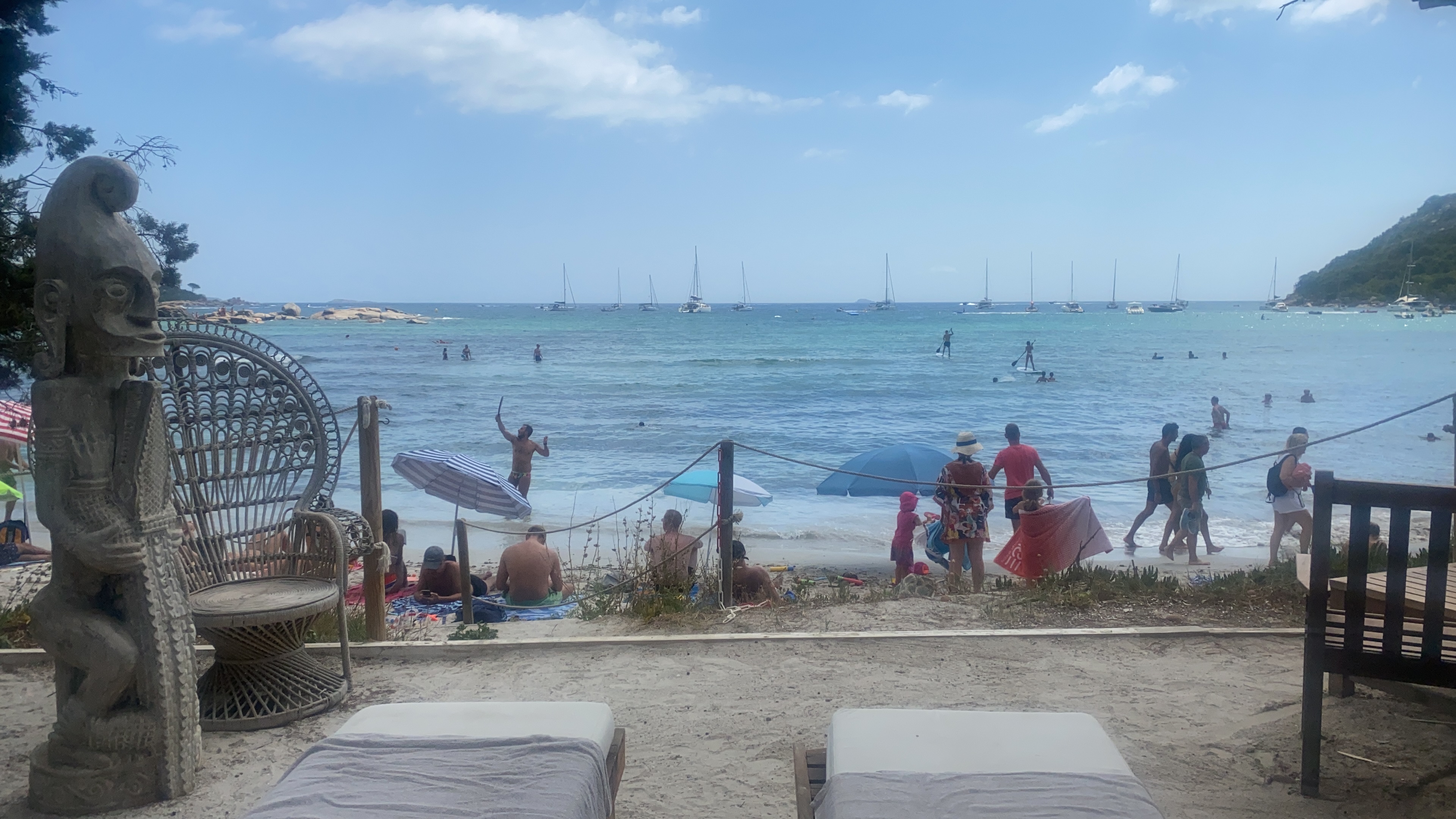 bel endroit sur la plage de Santa Giulia prix élevés mais l'endroit en vaut la peine