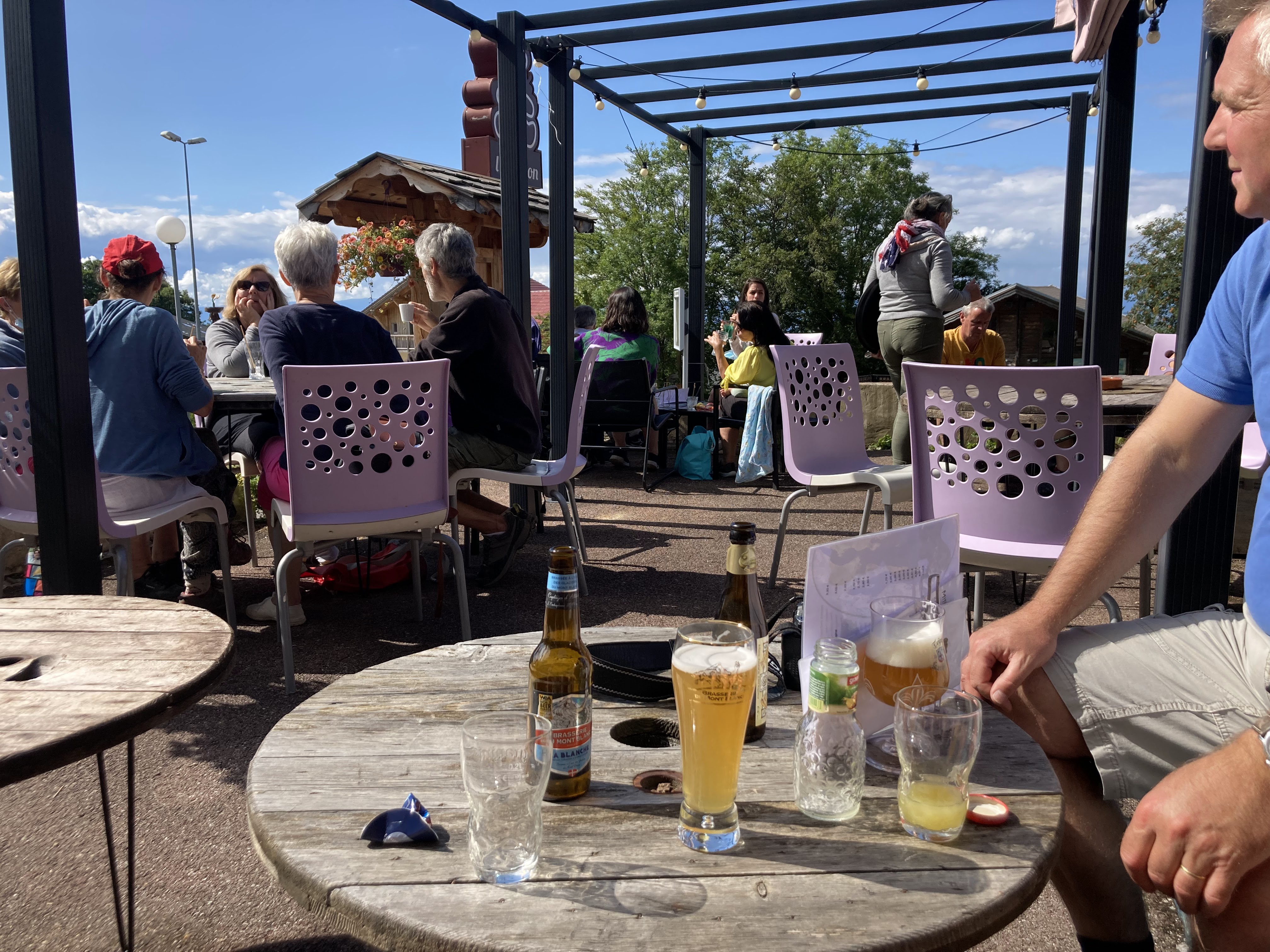 Après avoir passé deux apéritifs sur la terrasse de l'Ourson cette semaine du premier août, j'émets un petit avis sur cette petite restauration qui fait également office de bar. Nous avons été servis ces deux jours par la même serveuse qui était très aimable et serviable mais sans beaucoup d'expérience d'après nos observations. La terrasse dans le centre du village est sympa, sans plus. Ce premier août, nous avons eu la chance d'écouter un des plusieurs petits concerts que l'enseigne organise. Passer boire un verre sur cette terrasse est bien agréable, je recommande.