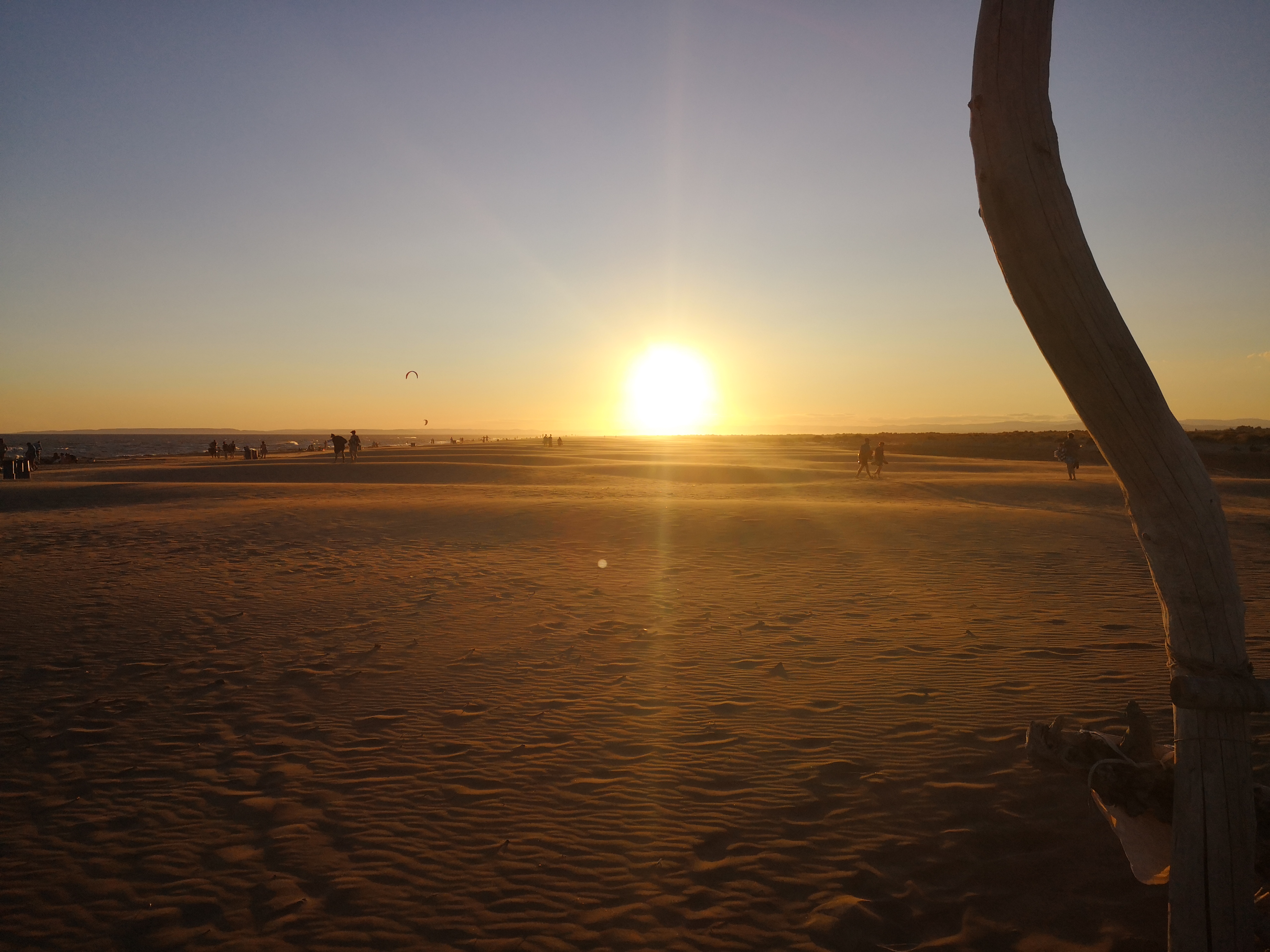 Grande plage s'étendant sur des kilomètres, avec un grand parking (payant) à proximité. Manque un peu d'infrastructure comme des douches, une petite route en bois pour ne pas se brûler les pieds à l'entrée (sable brûlant), un terrain de beach volley ou autre possibilité de faire du sport. Pareil pour ce qui est de la restauration ou des possibilités de faire d'autres activités (pédalo etc.). C'est pas grand chose mais ça pourrait être un bon plus