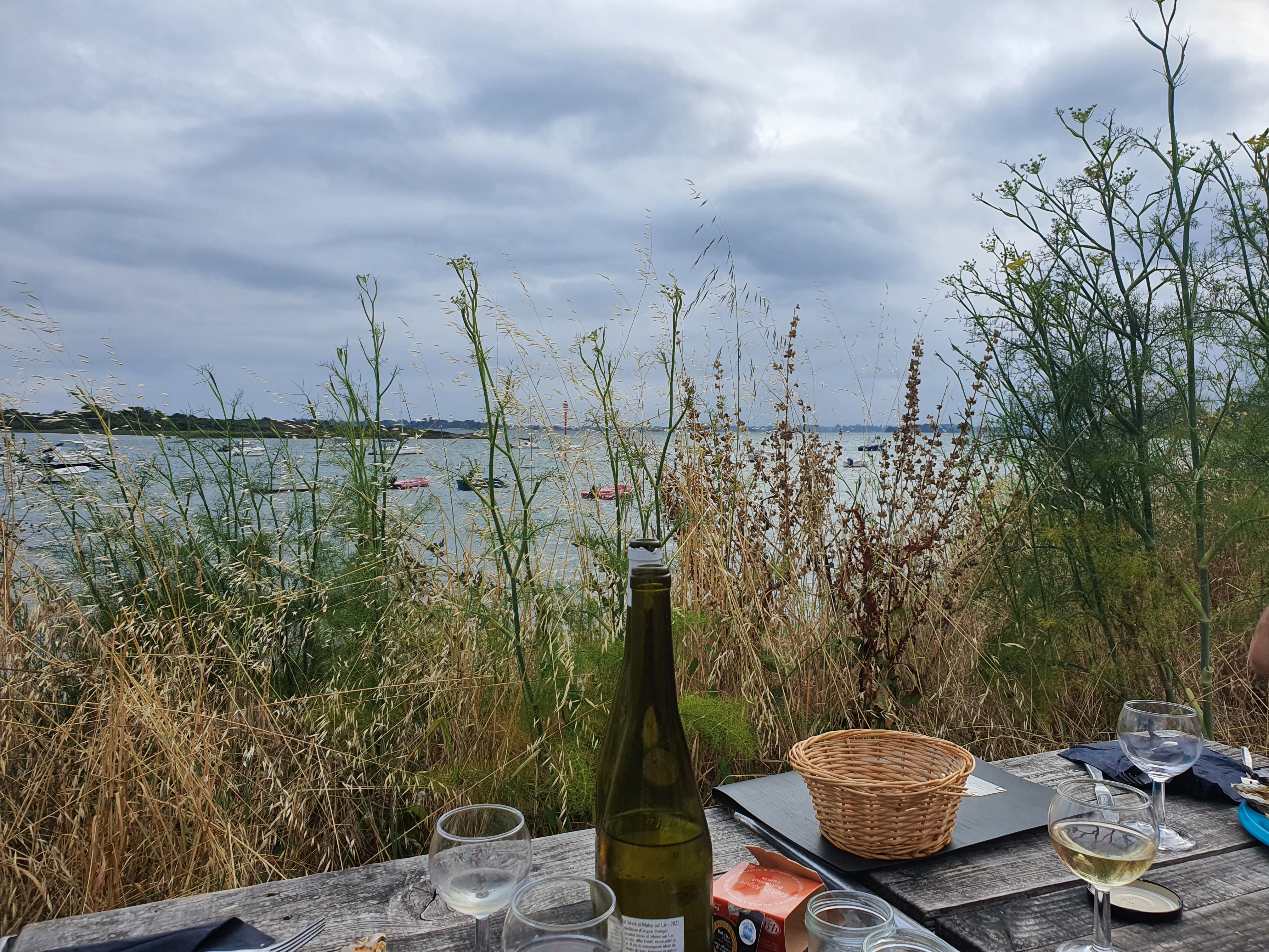 Accueillis avec le sourire dans un cadre simple et familial, nous avons dégusté les huîtres et terrines avec une vue imprenable sur le golfe du Mor-Biha. Fantastique !