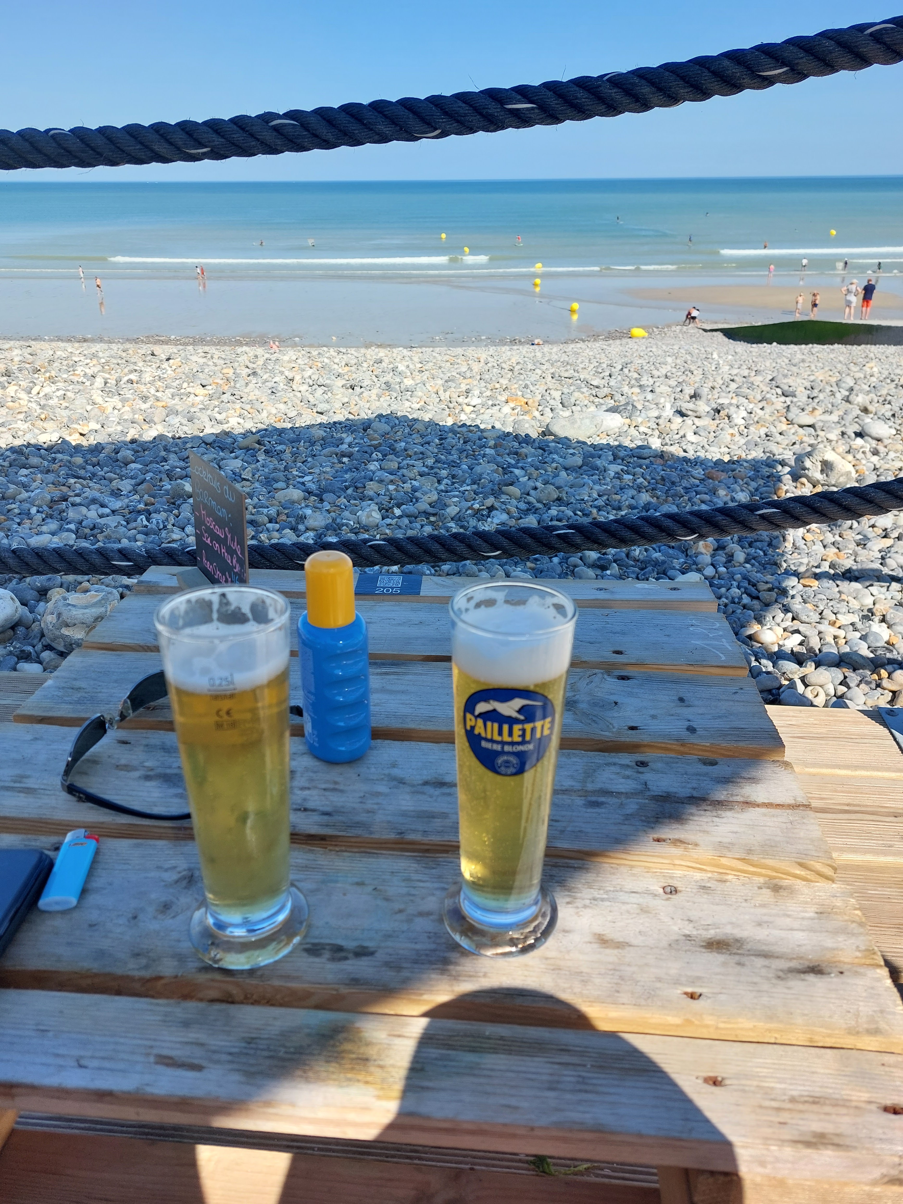 C'est la deuxième fois que je viens ici et je dois avouer que le lieu est très accueillant, ressourçant avec une vue imprenable sur la baie de Mers et du Tréport. J'ai grandi à Eu jusqu'à mes 18 ans et j'adore l'authenticité de la région mais je suis déçue de voir un si beau lieu ne pas être à la hauteur de ce qu’il renvoit. Les prix sont très élevés. Je conçois que l'emplacement de La Belle Plage Label Vie doit avoir un coût, mais la réalité c'est que ce bar est éphémère et que 6 mois de l'année doivent pouvoir subvenir aux besoins de ses travailleurs pendant un an. En revanche, le prix peut être justifié par une qualité irréprochable de ses produits, de ses boissons et de son service. J'ai moi-même fait trois ans de restauration et me sens légitime à émettre un jugement sur ce bar qui détonne complètement de la mentalité générale des trois villes soeurs. - Les bières sont banales et les planches à déguster sans goût. Je précise que je n'ai rien essayé d'autre. - Le service est déplorable : très long (sauf quand il s'agit de payer). On reste à la porte d'entrée de la Picardie : les soirées sont fraiches. 10 plaids pour une terrasse de cette taille m'interroge sur l'empathie des propriétaires sur ses clients. Rassurez-vous, ils sont quand même assez sympas. Je ne recommande tout simplement pas ce lieu.