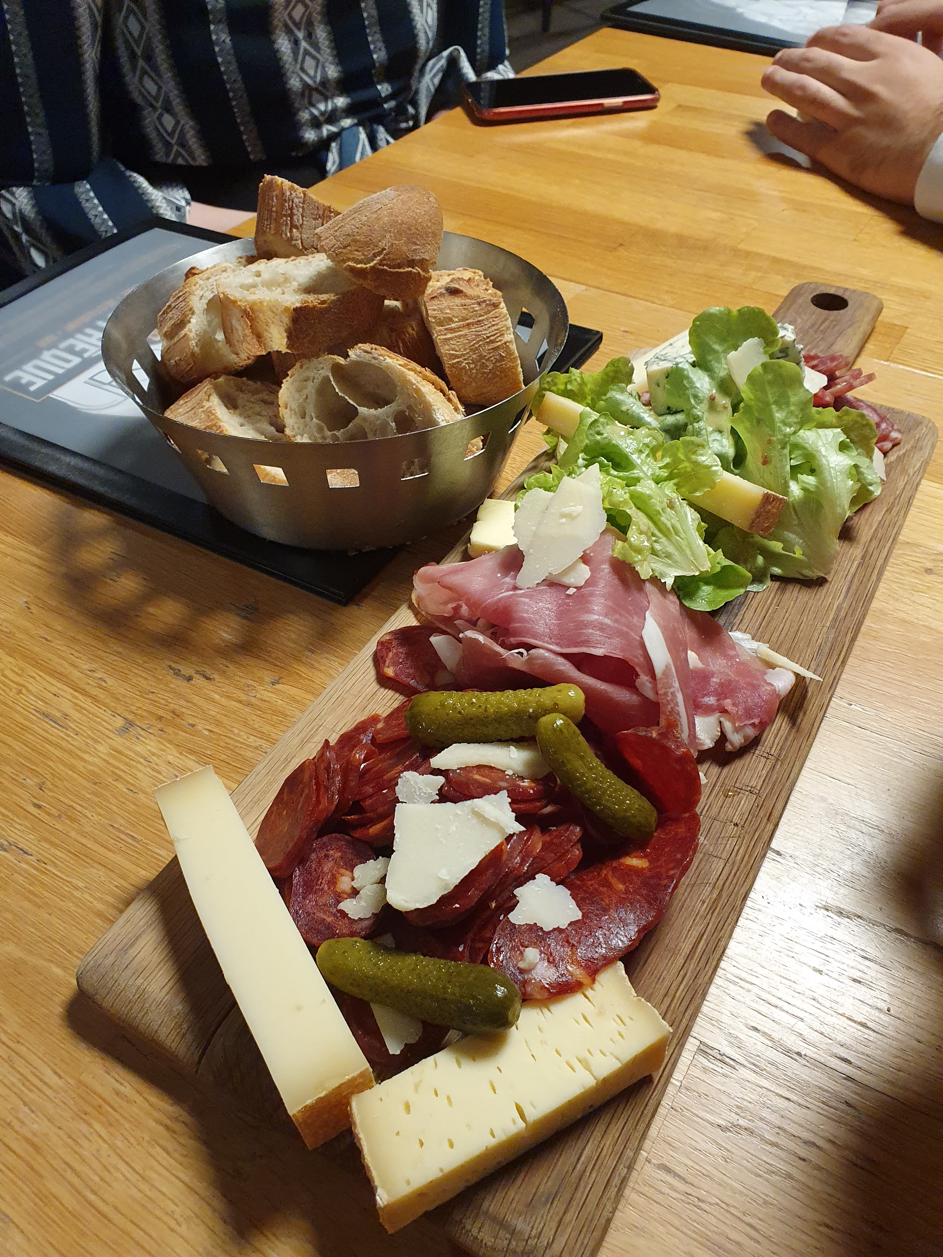 Très bon et beau plateau de charcuterie et fromage, pour une vingtaine d'euros. Ambiance sympa