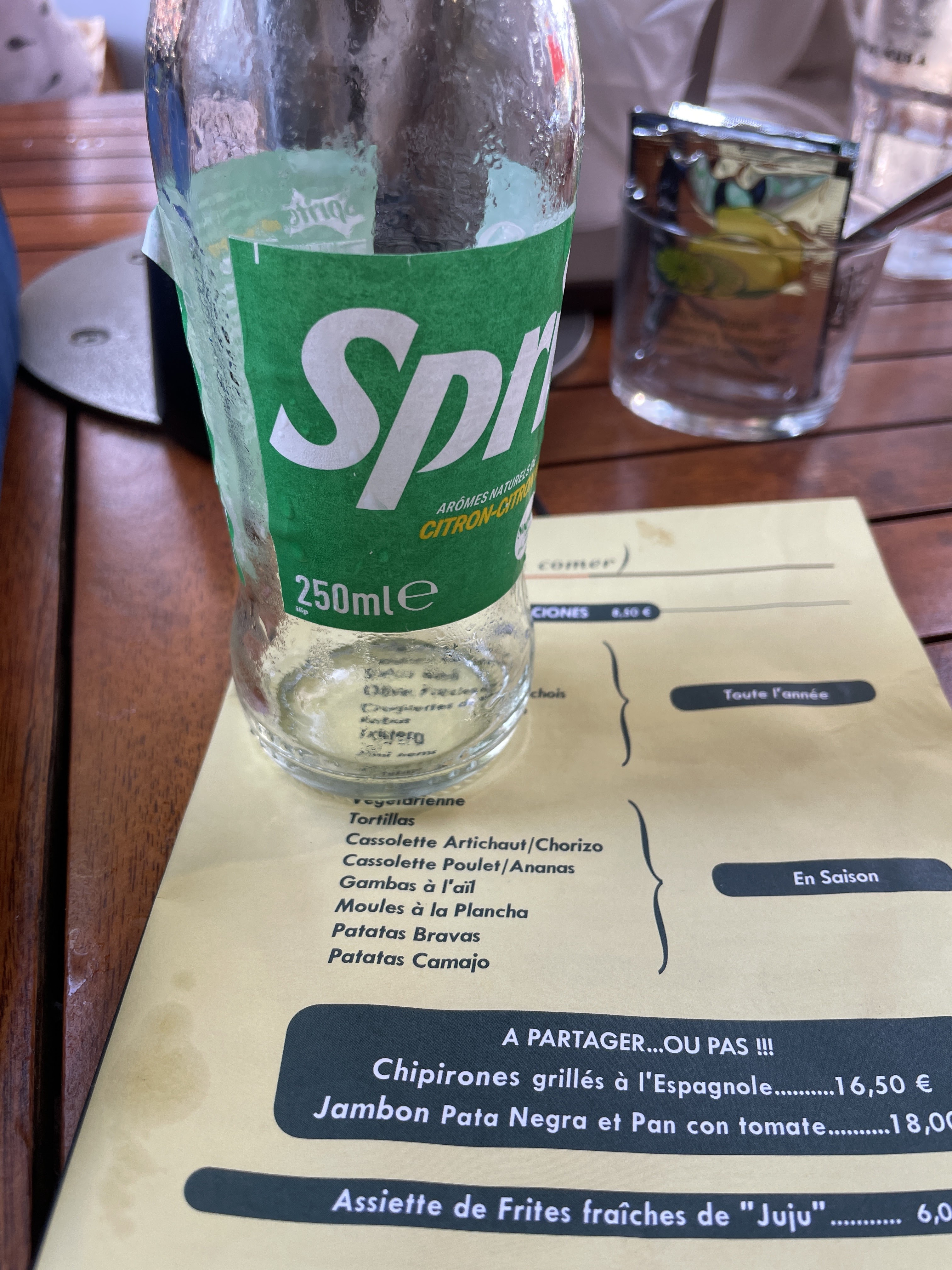 Verre très petits réponse du serveur : le sers les verres avec un doseur de 4 cl 3 fois qu’elle mauvaise foi!! Sinon les tapas de poulpe en carpaccio pas mal du tout