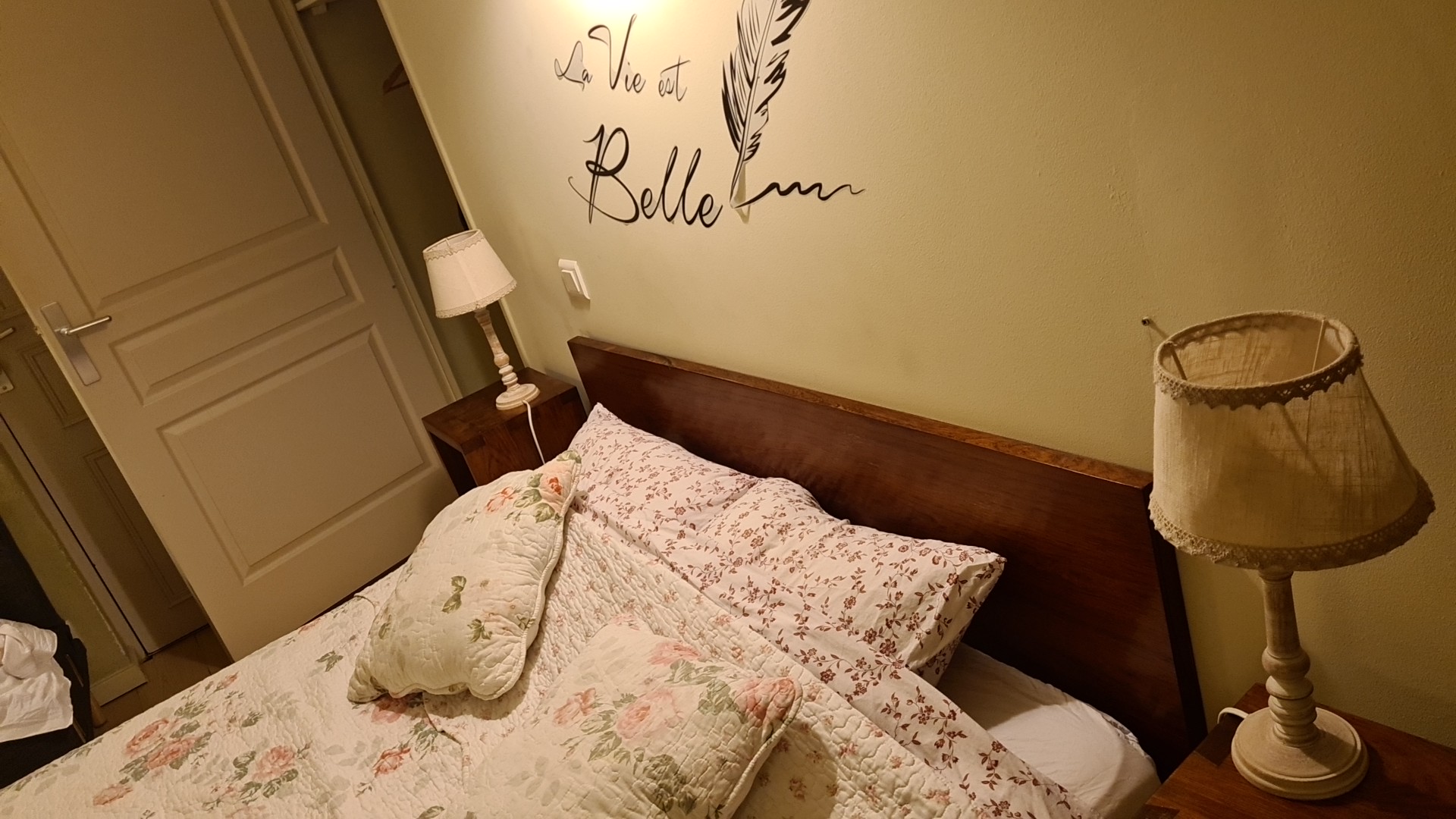 J'ai eu un peu peur en arrivant : chambre située au-dessus du bar (qui fait partie de la boutique Fotoon) et fête au village. Ouf ! Il s'agissait d'un marché animé qui s'est terminé à 21 h. Le double vitrage à fait le reste. Accueil vraiment charmant, hôte aux petits soins. On peut se garer facilement dans cette montée, il y a un restaurant juste en face (ou la brasserie La barrière !) et Blesle est un village magnifique. Brunch avec œufs, lard, fromage, fruits frais, confitures, etc. De là aussi, on n'a pas envie de partir. Ensorcelant, ce bled !