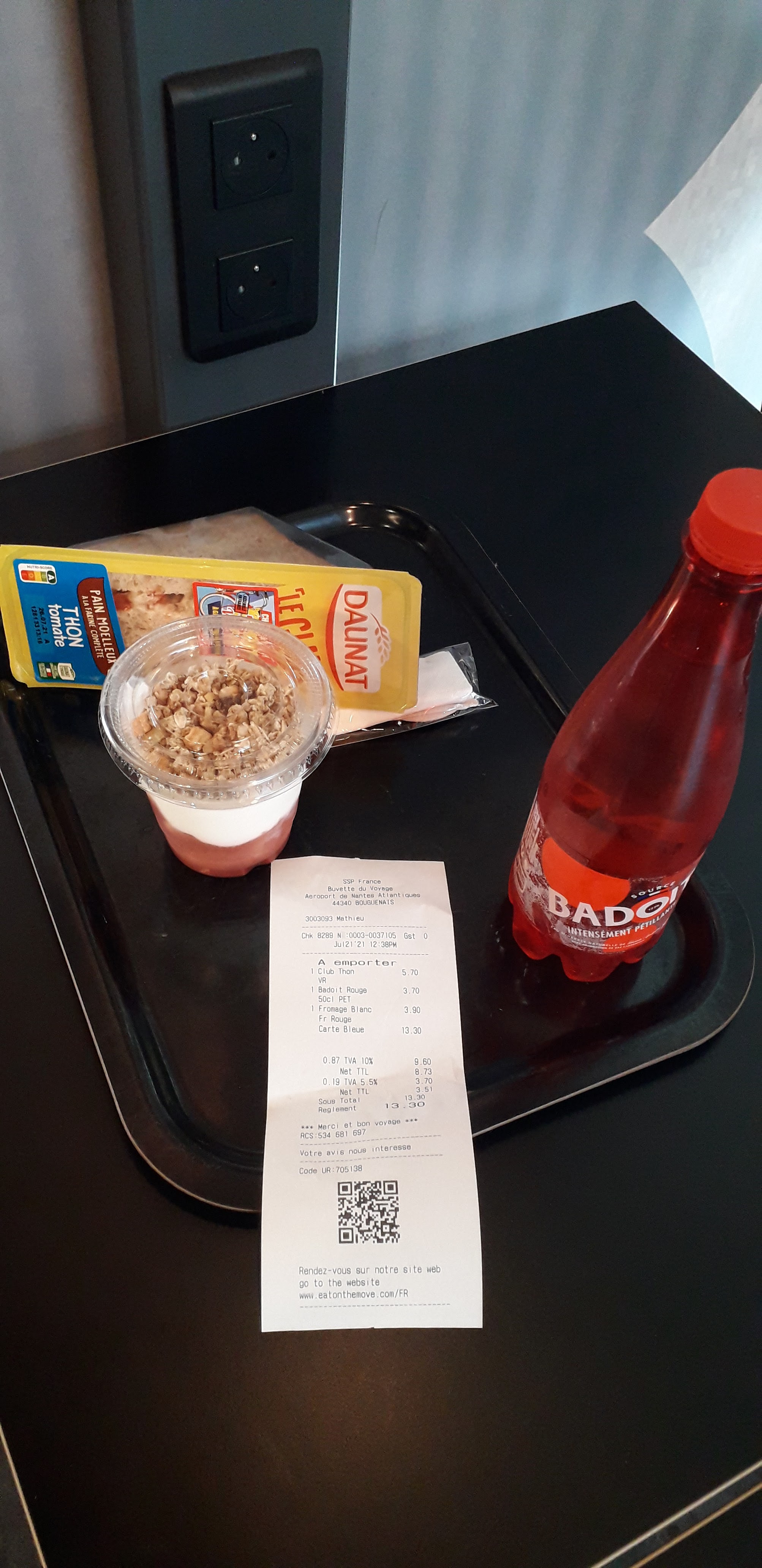 Buvette de l'aéroport de Nantes j'étais bien contente de trouver des prises électriques pour recharger mon portable pouvoir me restaurer et me reposer