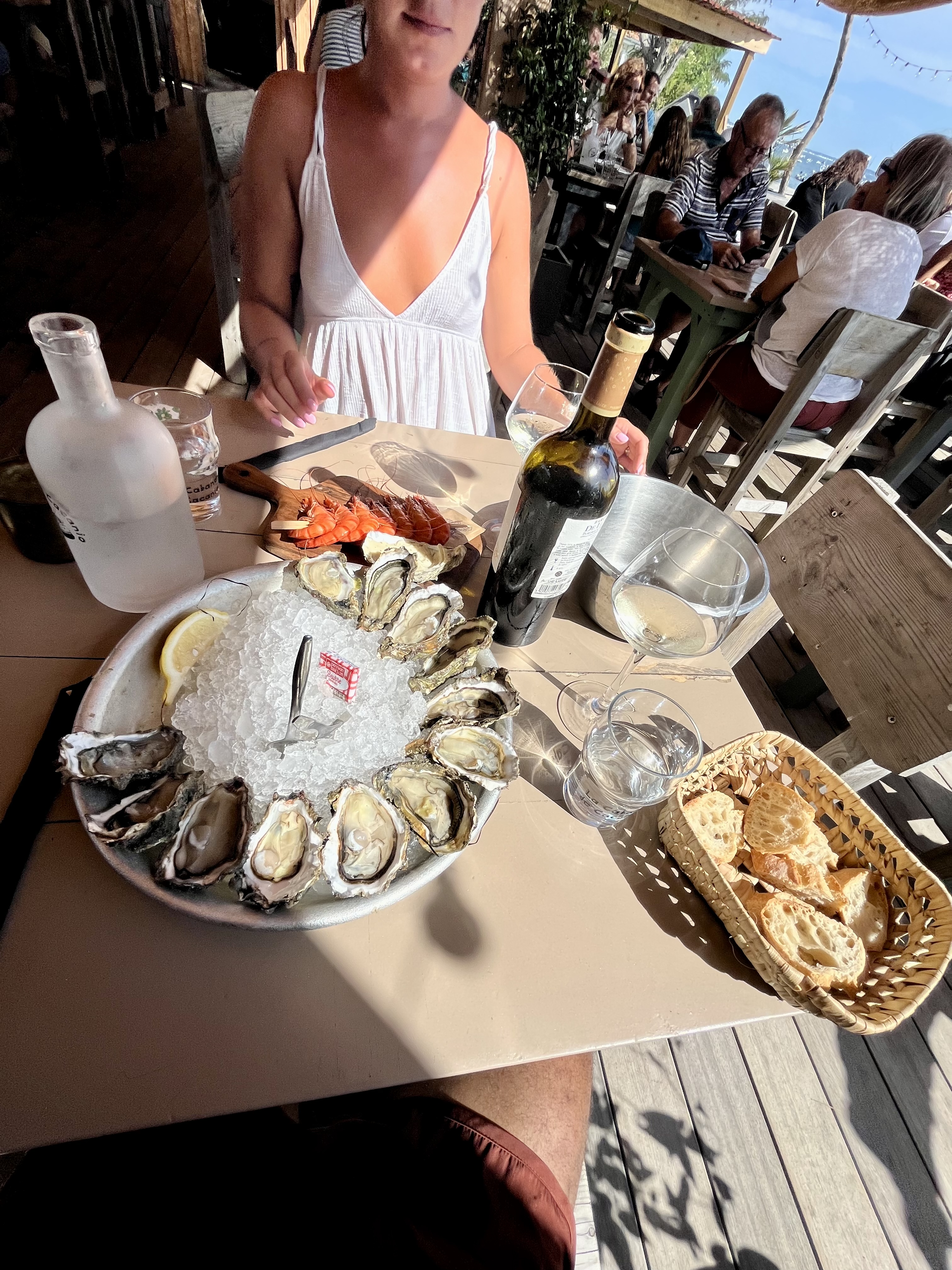 Le paradis ! Soleil, douceur, huîtres, crevettes, pâté, verres de vins... Des produits frais, hummm 😎🦪🍤👍