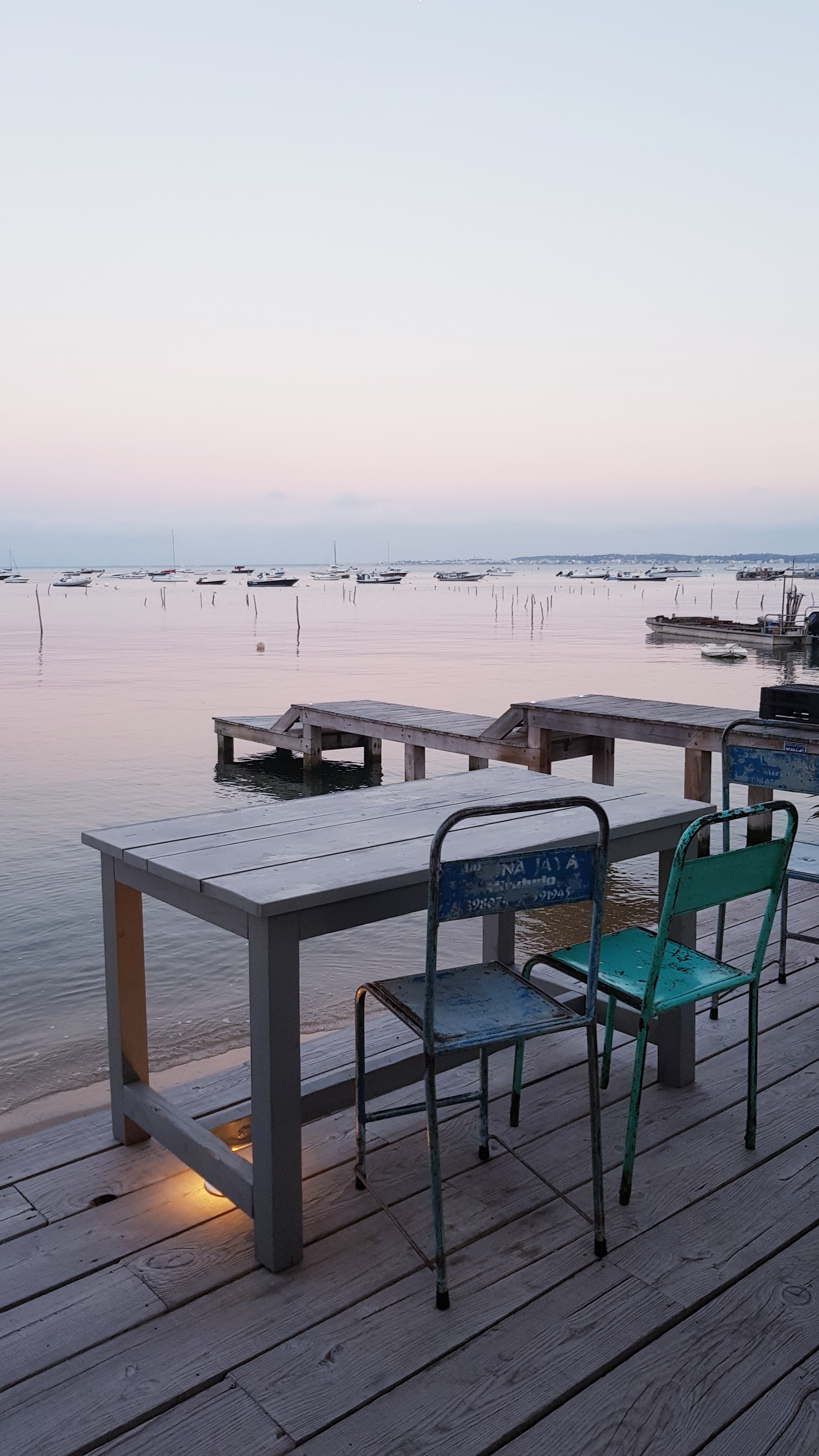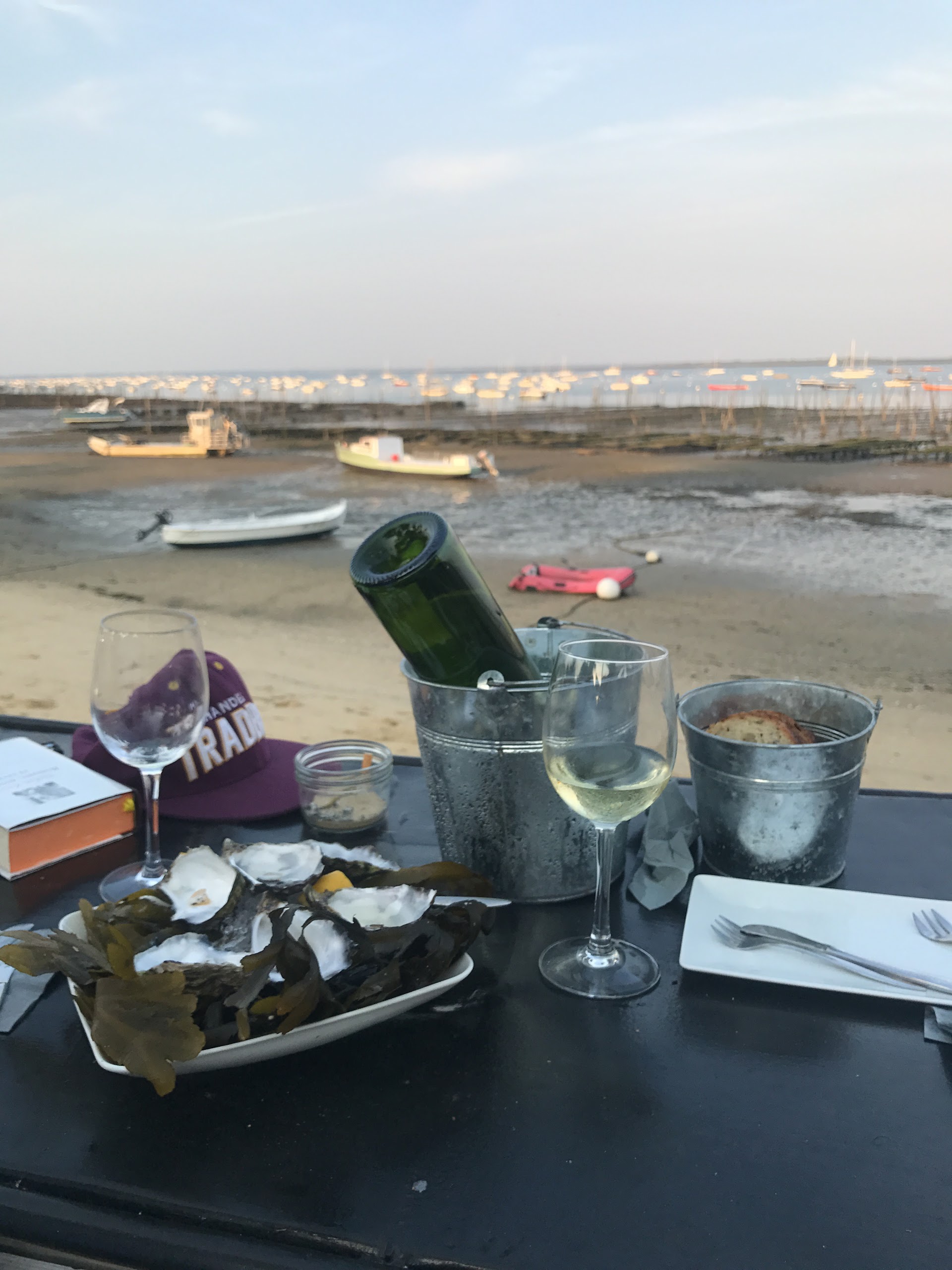 Dégustation d'huîtres du bassin d'Arcachon face à ce dernier. Cool et bon.