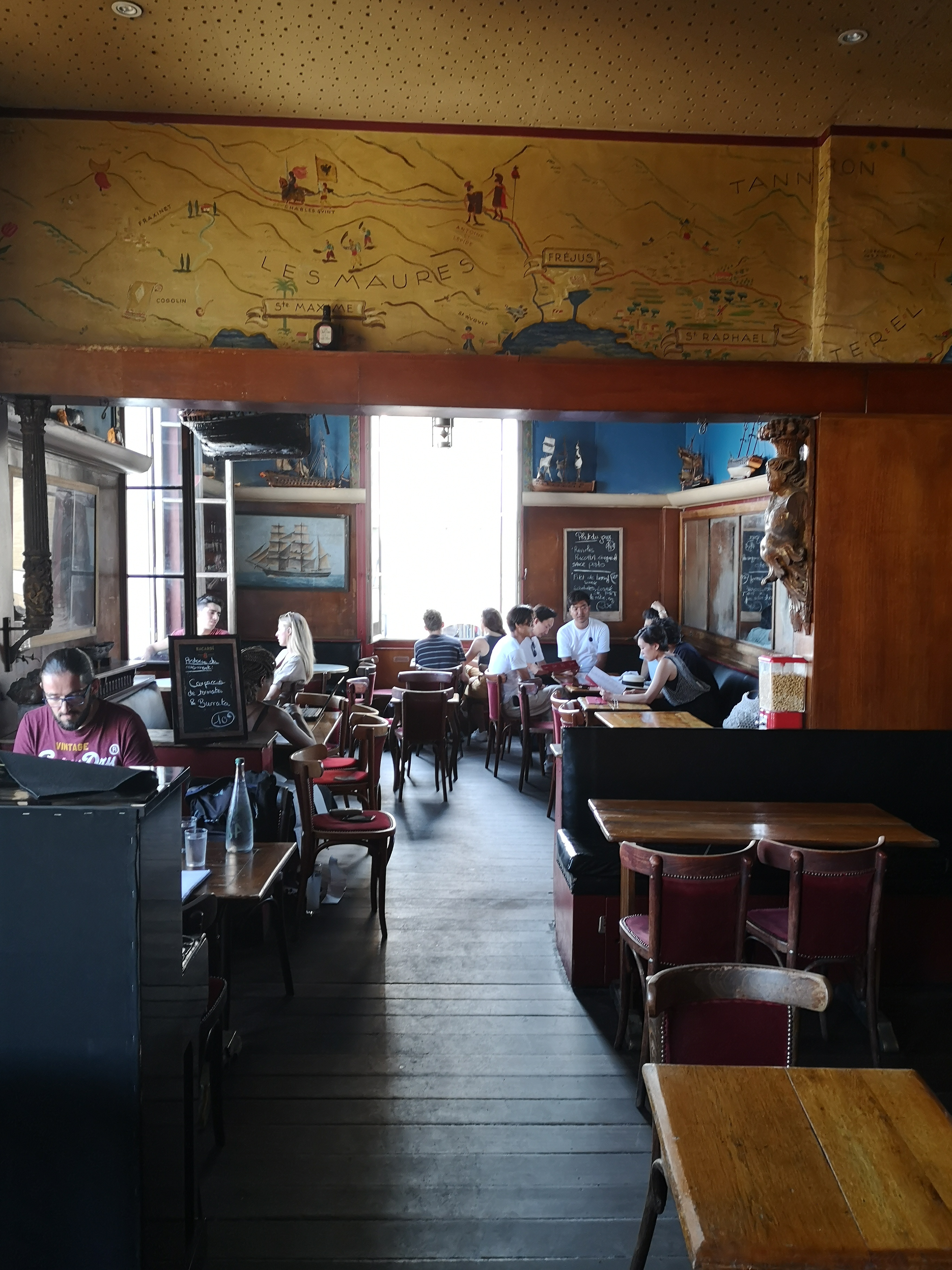Je voulais goûter des panisses, je n'ai pas été déçue par ce bar à tapas. Belle découverte face à la Bonne Mère. Bonne ambiance dans ce décor de frégates, caravelles et autres galions.