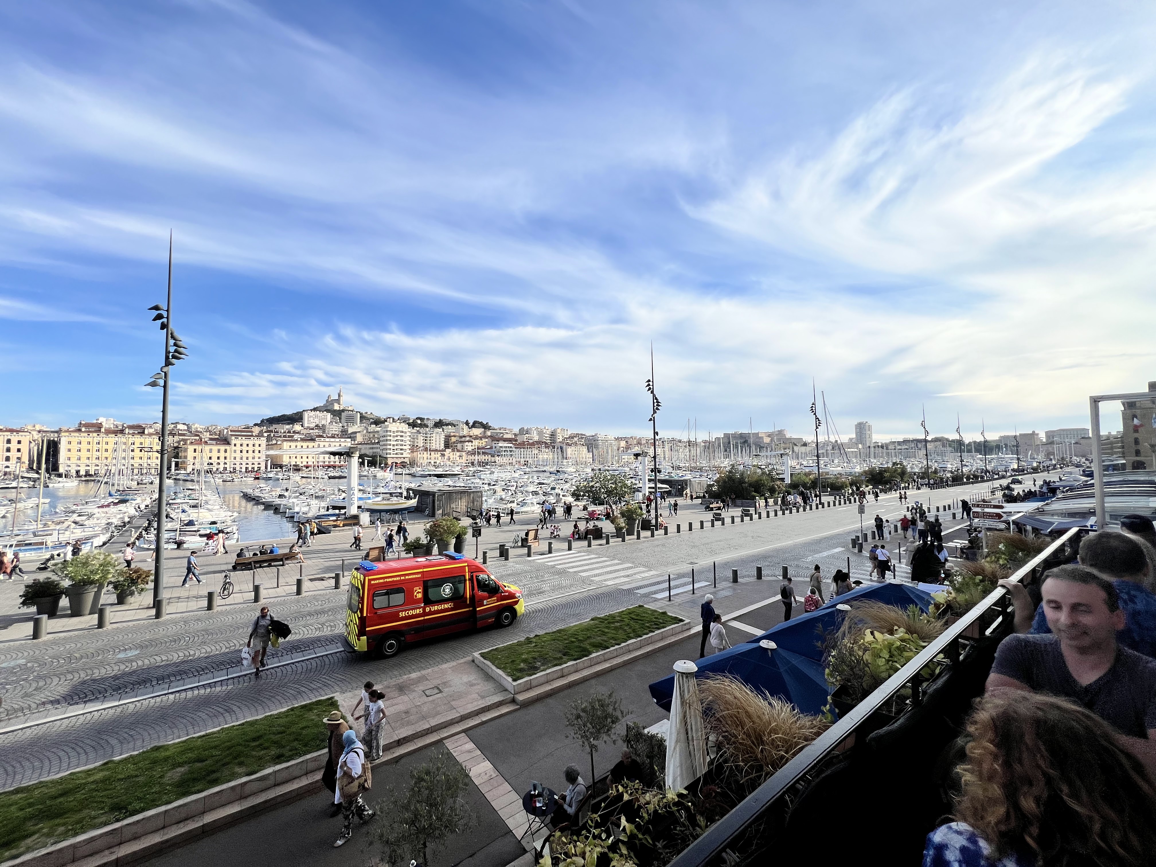 Le lieu est unique. Aucun emplacement sur le Vieux Port ne peut prétendre l’égaler. Mais là où on est sidéré, c’est que la cuisine est remarquable elle aussi. J’ai mangé un aïoli éblouissant et une tarte au citron revisitée de très haut niveau. On en revenait pas tant on est habitué à une cuisine moyenne quand le lieu est exceptionnel. Vraiment bravo !