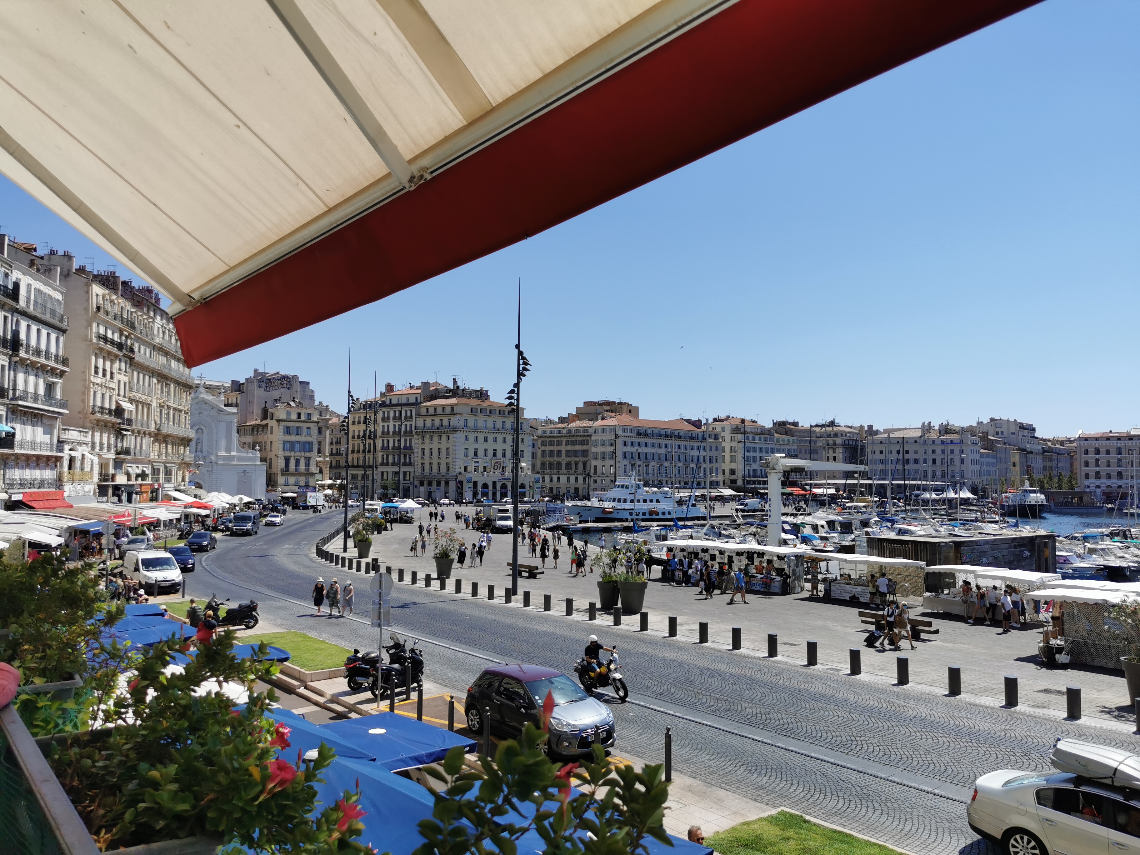 Vue imprenable sur le Vieux Port de Marseille pour un très bon petit déjeuner au soleil. Décoration originale