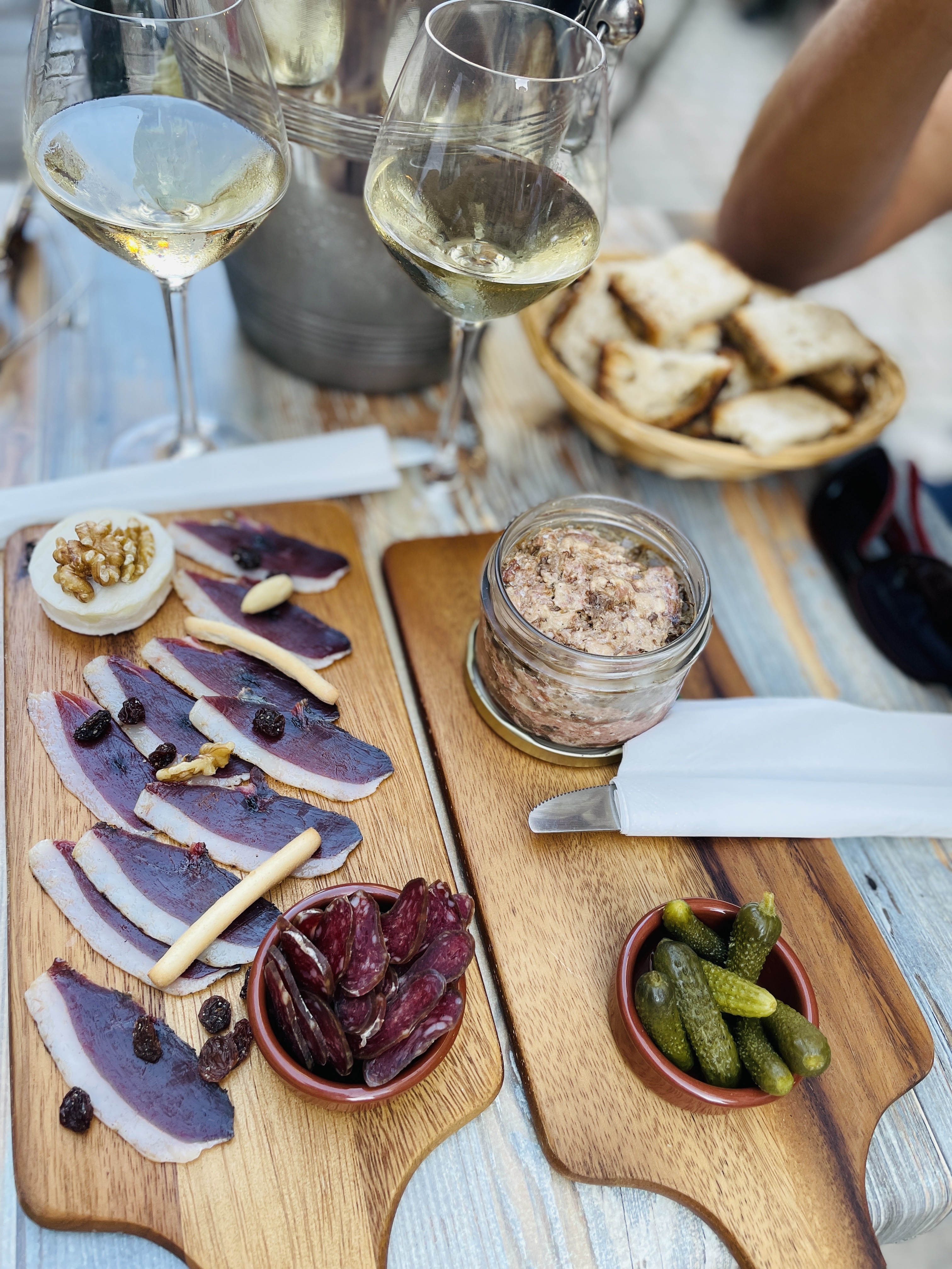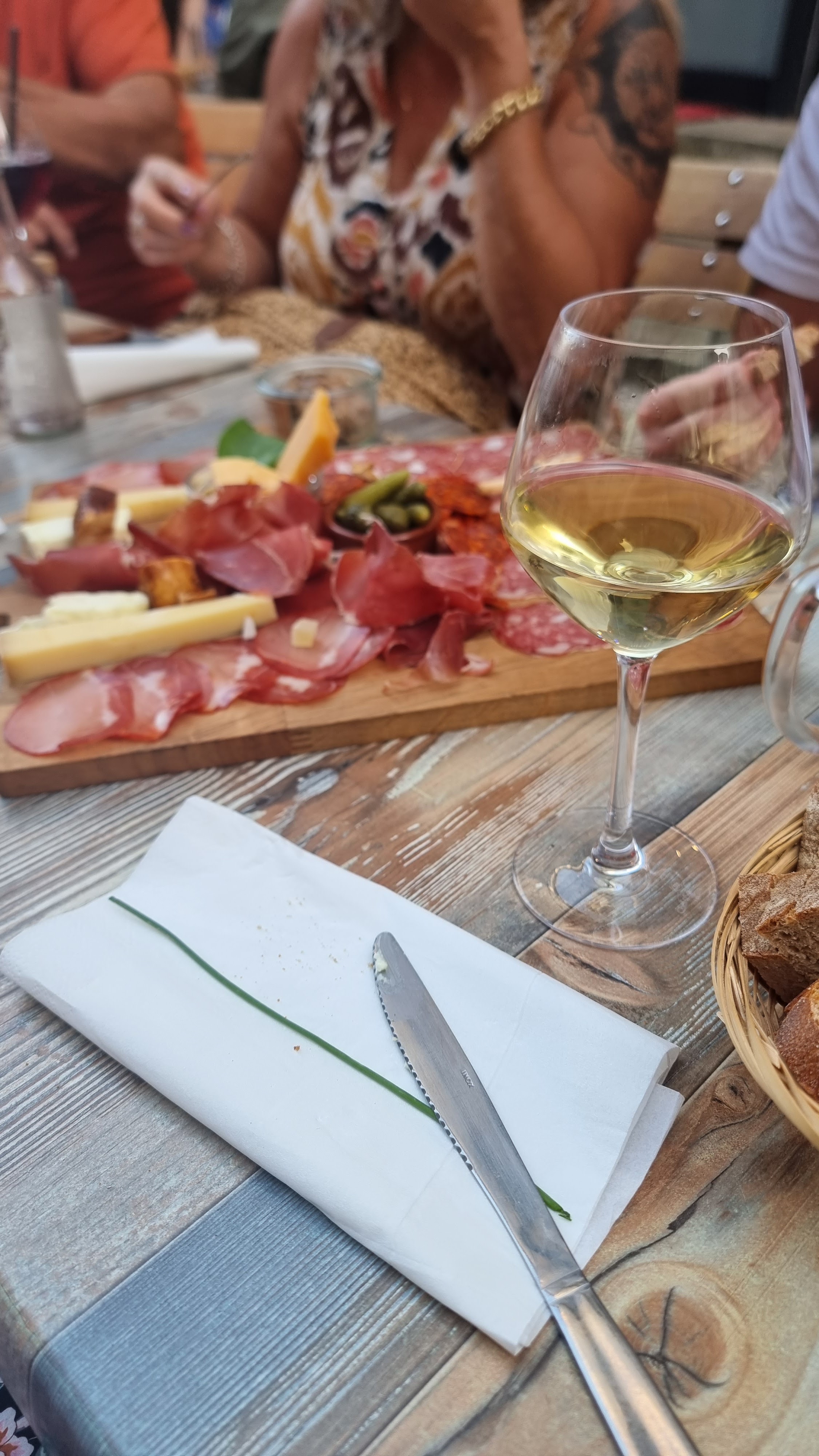Vin blanc excellent, plateau de charcuterie de qualité, terrasse sur une rue piétonne, et servi avec gentillesse et sourire, merci à vous. au top! je recommande*****