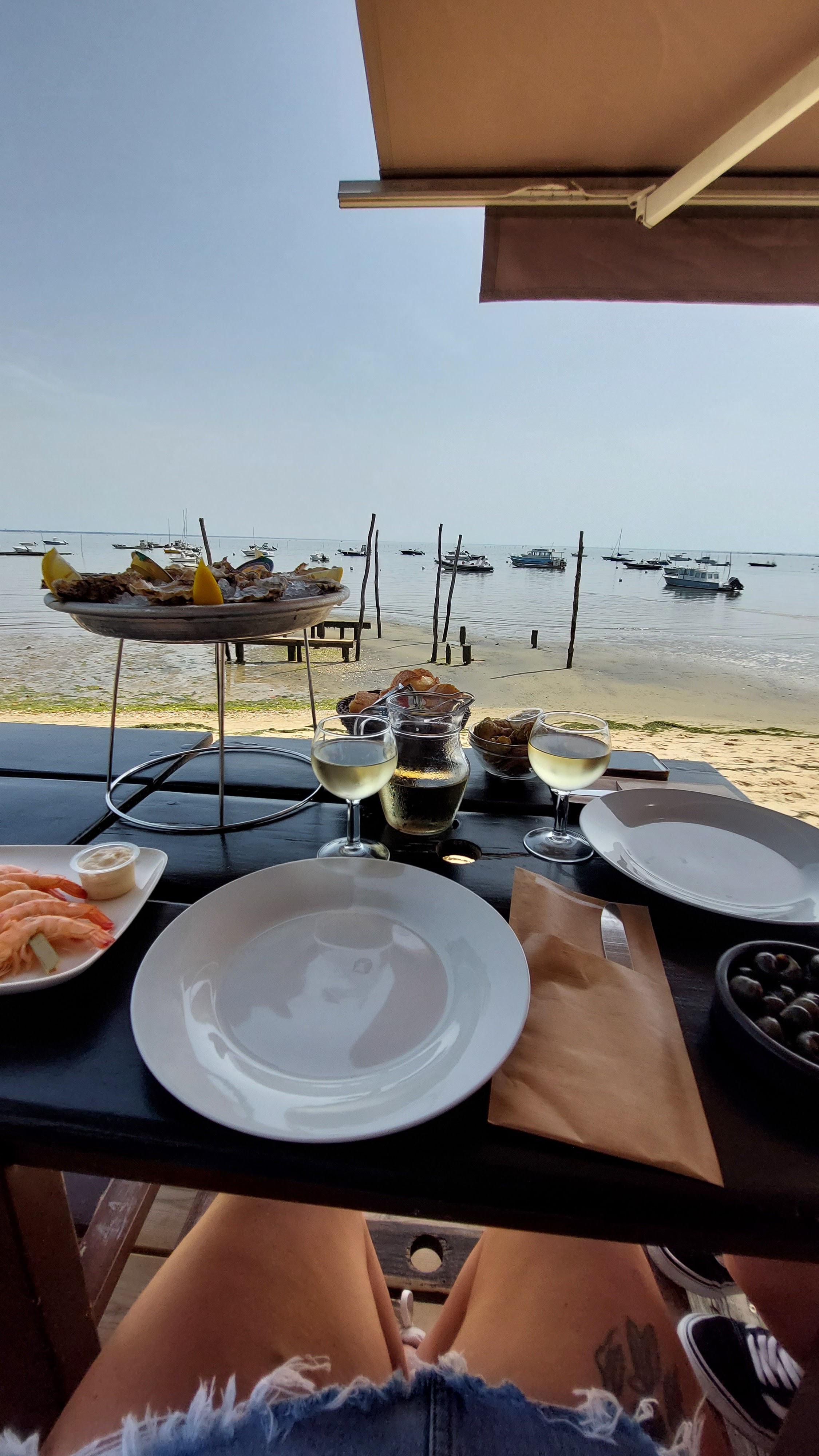 Les pieds dans le sable avec la vue sur le Bassin, des huîtres dans l’assiette et un personnel impeccable ! Top!