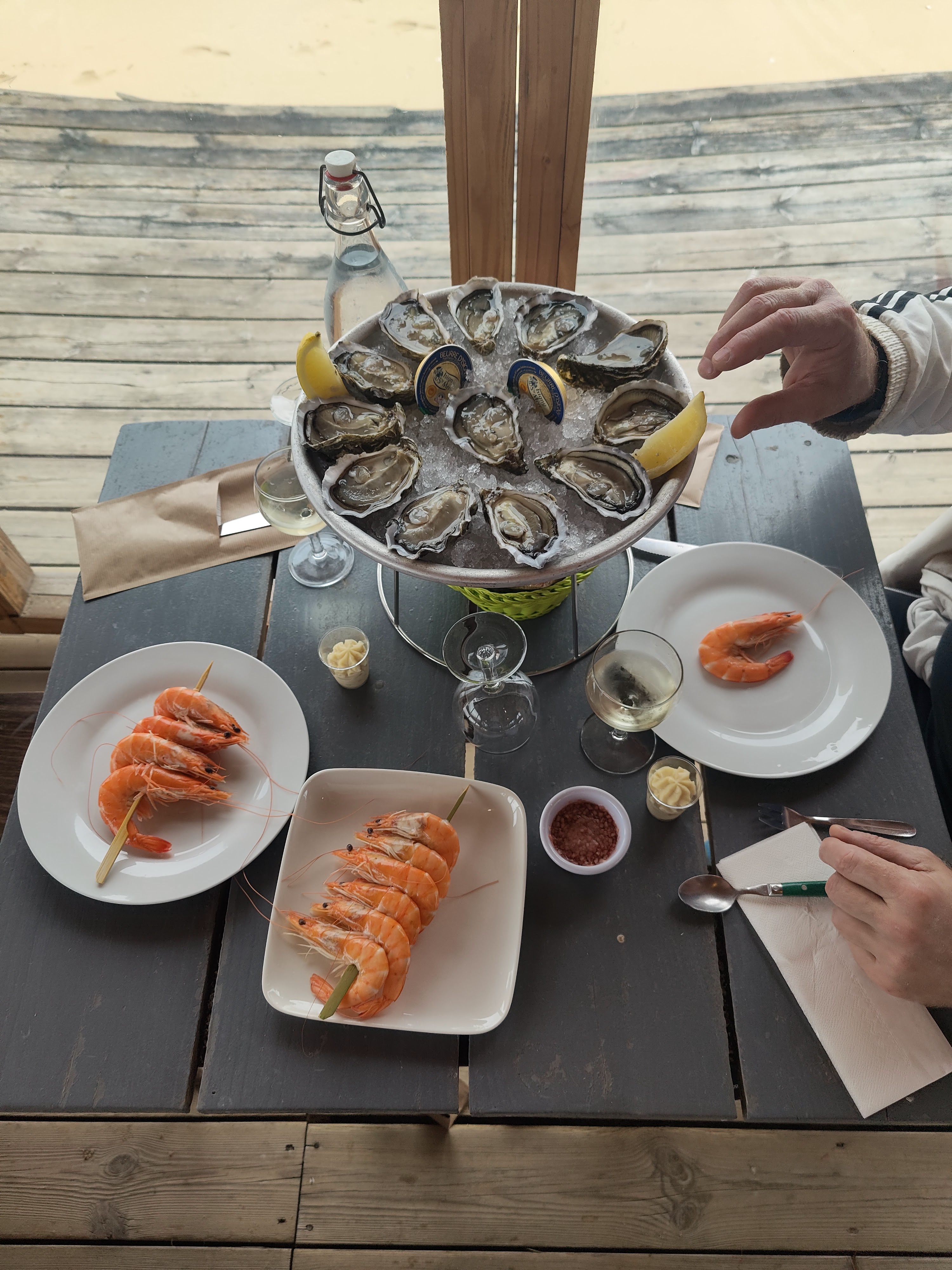 Un bel endroit au cap ferret, huîtres bulots crevettes et vin blanc Un régal