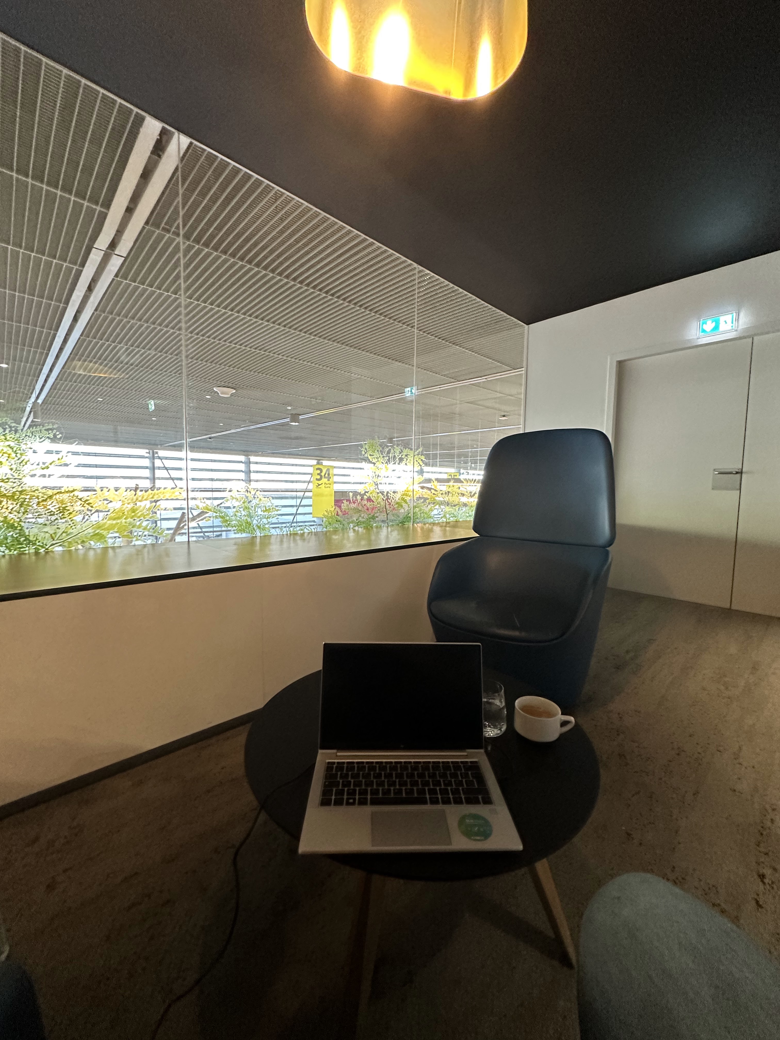 Moment de détente au calme avant de voler vers Paris. On peut regretter le manque de diversité des boissons et des sandwichs proposés. Mais on est hors de la cohue de l aéroport.