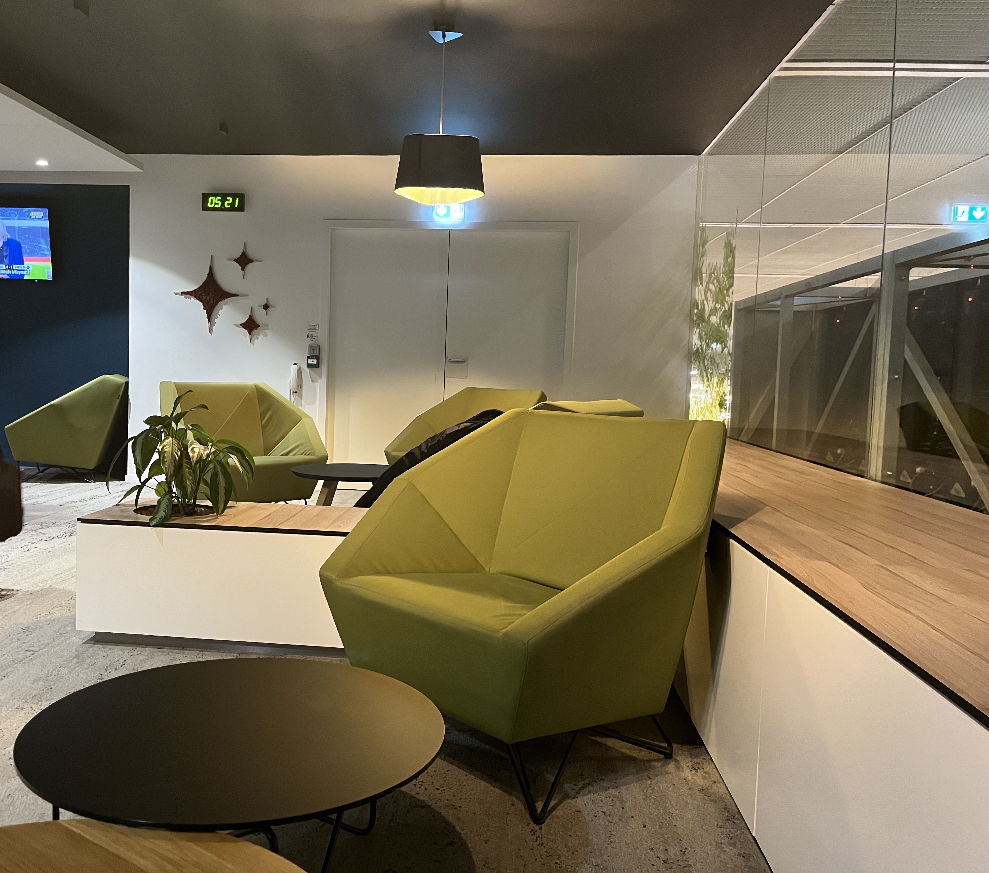 Le salon est élégant et confortable. Mais mauvais choix de nourriture et de collations. En fait, je ne me souviens pas d’un autre salon dans le monde offrant un choix plus limité. Le soir, lorsque les sandwichs sont vides, ils ne sont pas remplacés. En visite aujourd'hui un dimanche, aucune nourriture proposée n'est proposée, c'est des chips et du yaourt.