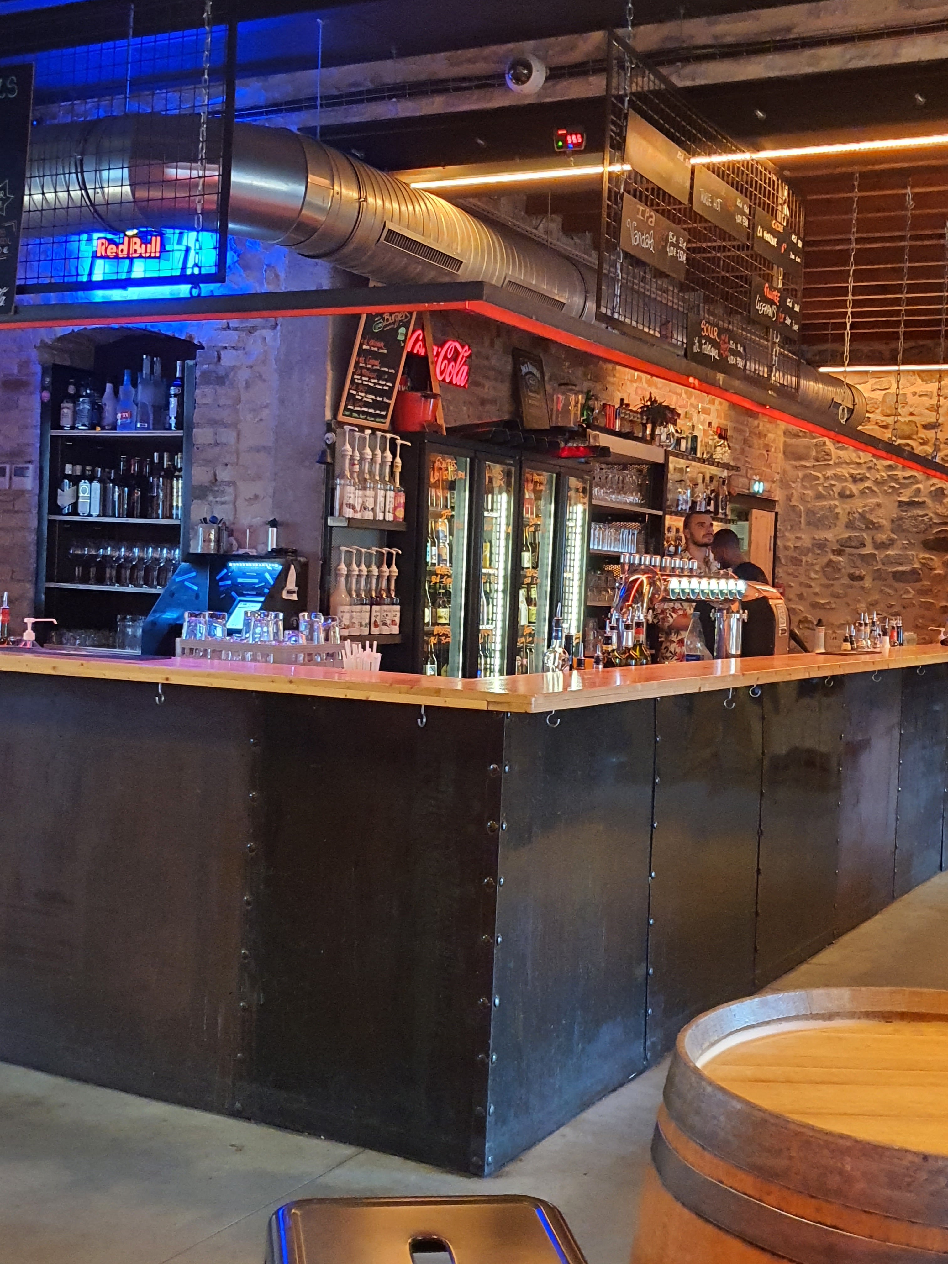 Moderne loft industrie, bar bruschetta taps cocktails bières et musique etc...lieu branché le soir