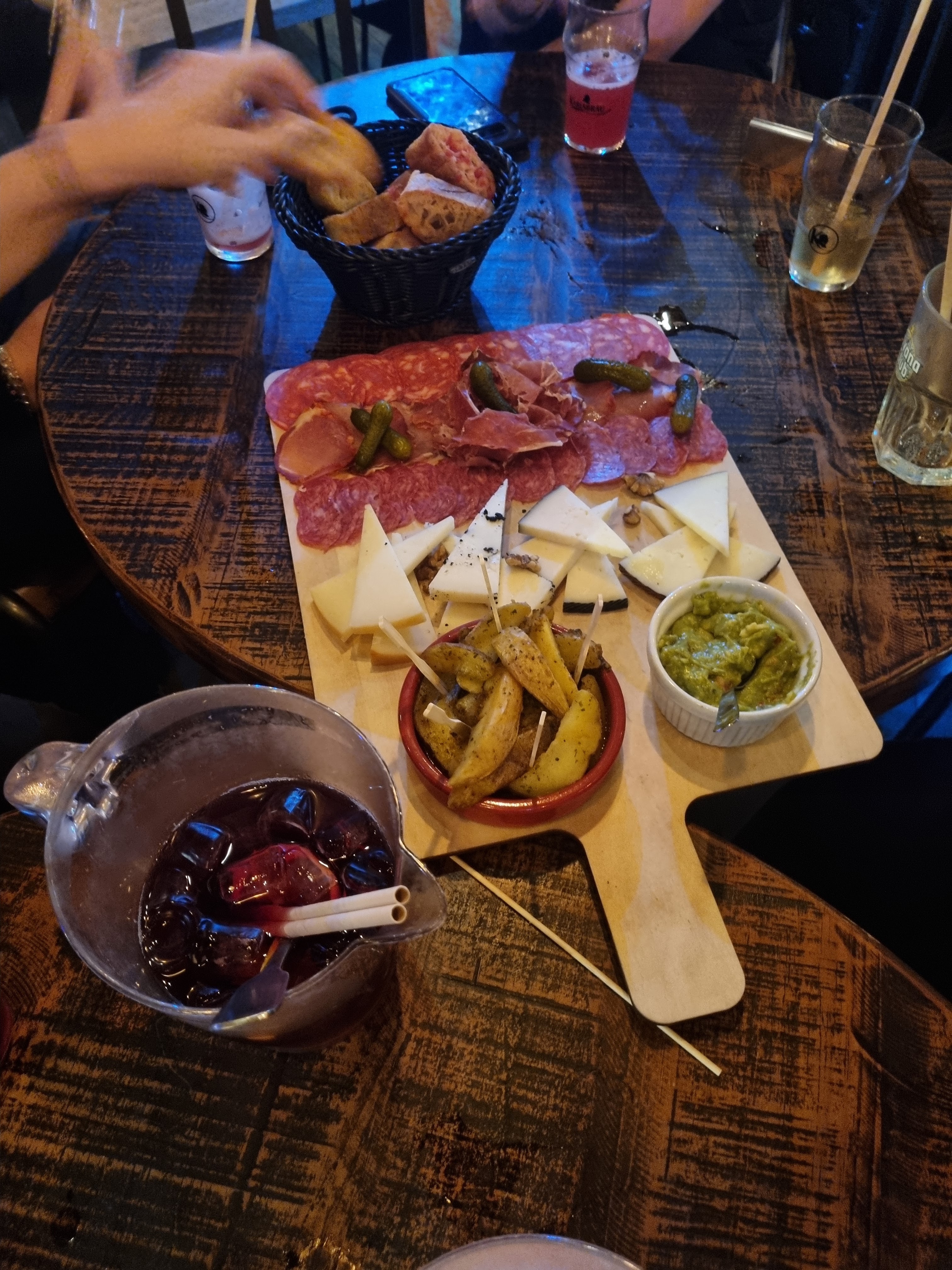 Lieu sympa pour faire la fête, musique, ambiance, on peut danser jusqu’à tard ou tôt le matin. Tapas aux choix, grande planche Xl.