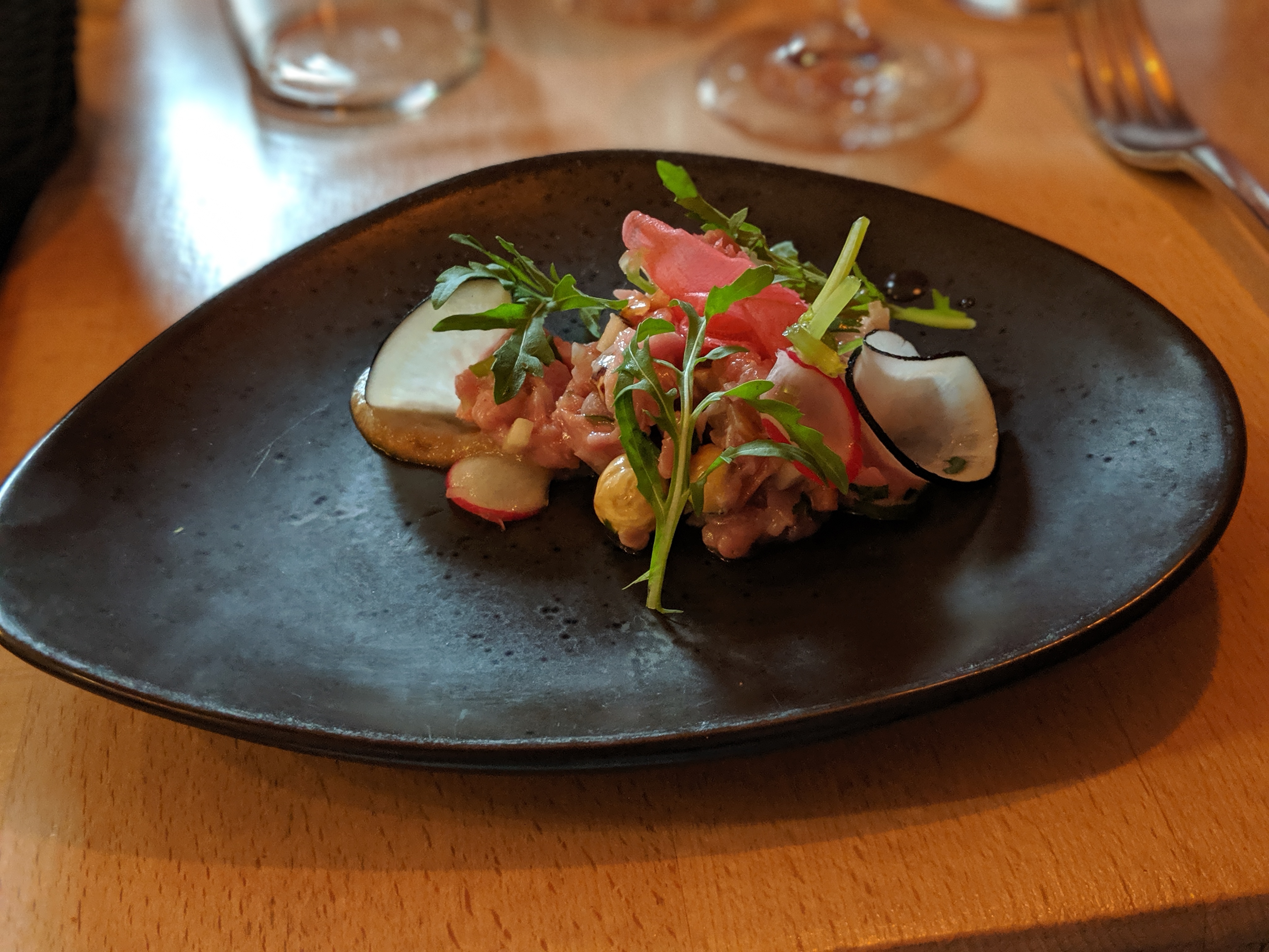 Je m'attendais à être bluffé par les bières, mais c'est bien de la cuisine qu'est venue la meilleure surprise. Tous les plats étaient excellents, avec des options végétariennes de très haut vol, mention spéciale au dessert à la betterave qui m'a bluffé. Les bières sont très sympas, chouette sélection mais les accords avec les mets n'apportaient pas forcément grand chose à mon sens.