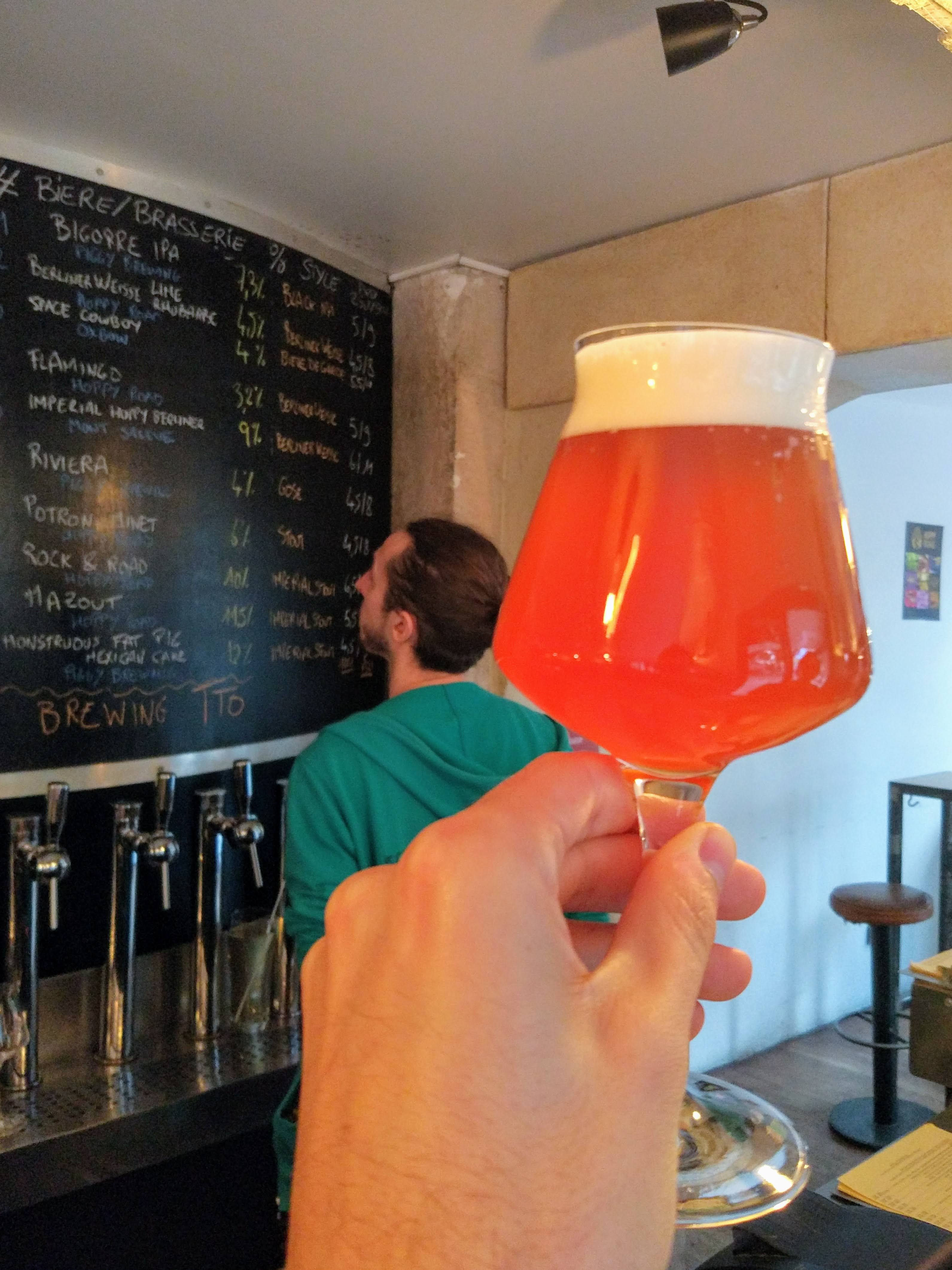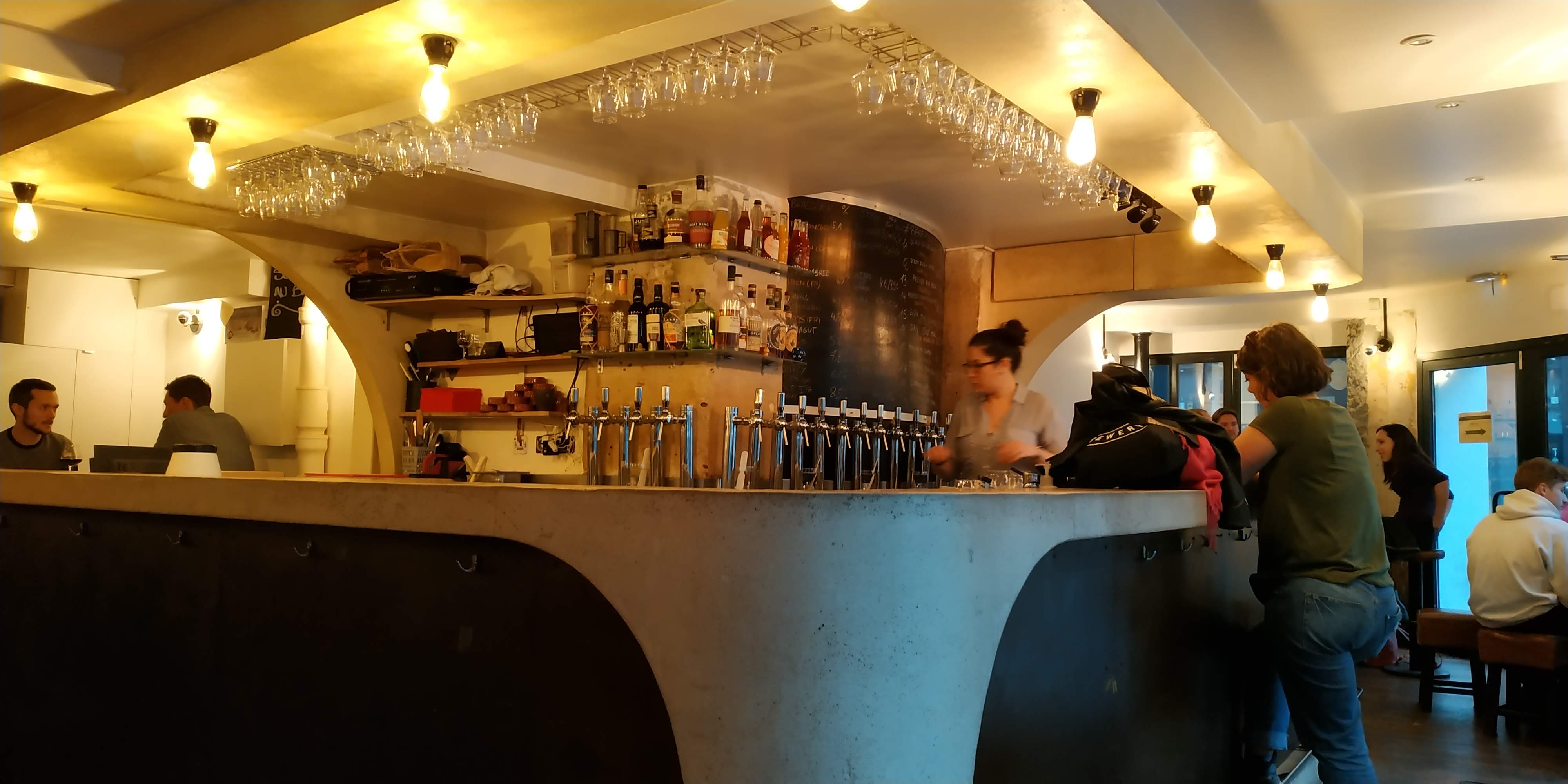 Je viens au bar, je demande « ce soir, j'aimerais bien une acide avec une pointe de fruit », et on me fait gouter 3 variantes avant de servir mon verre Quand j'ai faim, je reviens au bar, et je demande « vous avez quoi comme fromage pour aller avec cette bière ? » et on me conseille en expliquant pourquoi. Bref, c'est pas, mais alors pas du tout un bar ordinaire.