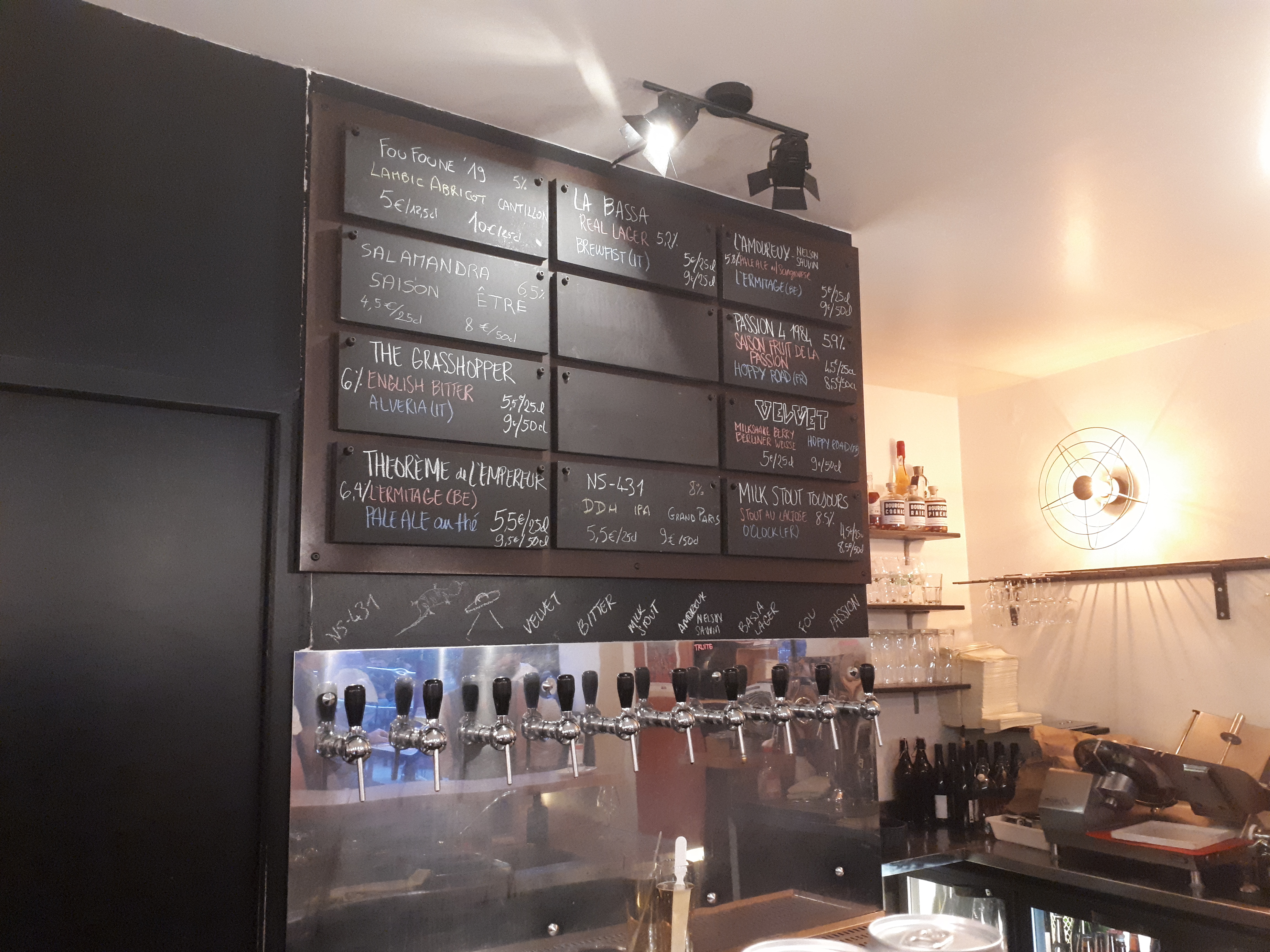 Je n'arrive pas à croire que j'ai failli passer parce que je l'ai confondu avec le restaurant de l'autre côté. Ils ont un grand choix d'IPA à la pression (quand j'y étais) qui sont toutes de premier ordre ainsi qu'un réfrigérateur bien approvisionné avec une grande variété de bonnes bières de tous types de styles. Un endroit agréable et confortable pour se détendre et profiter d'une chaude nuit parisienne.