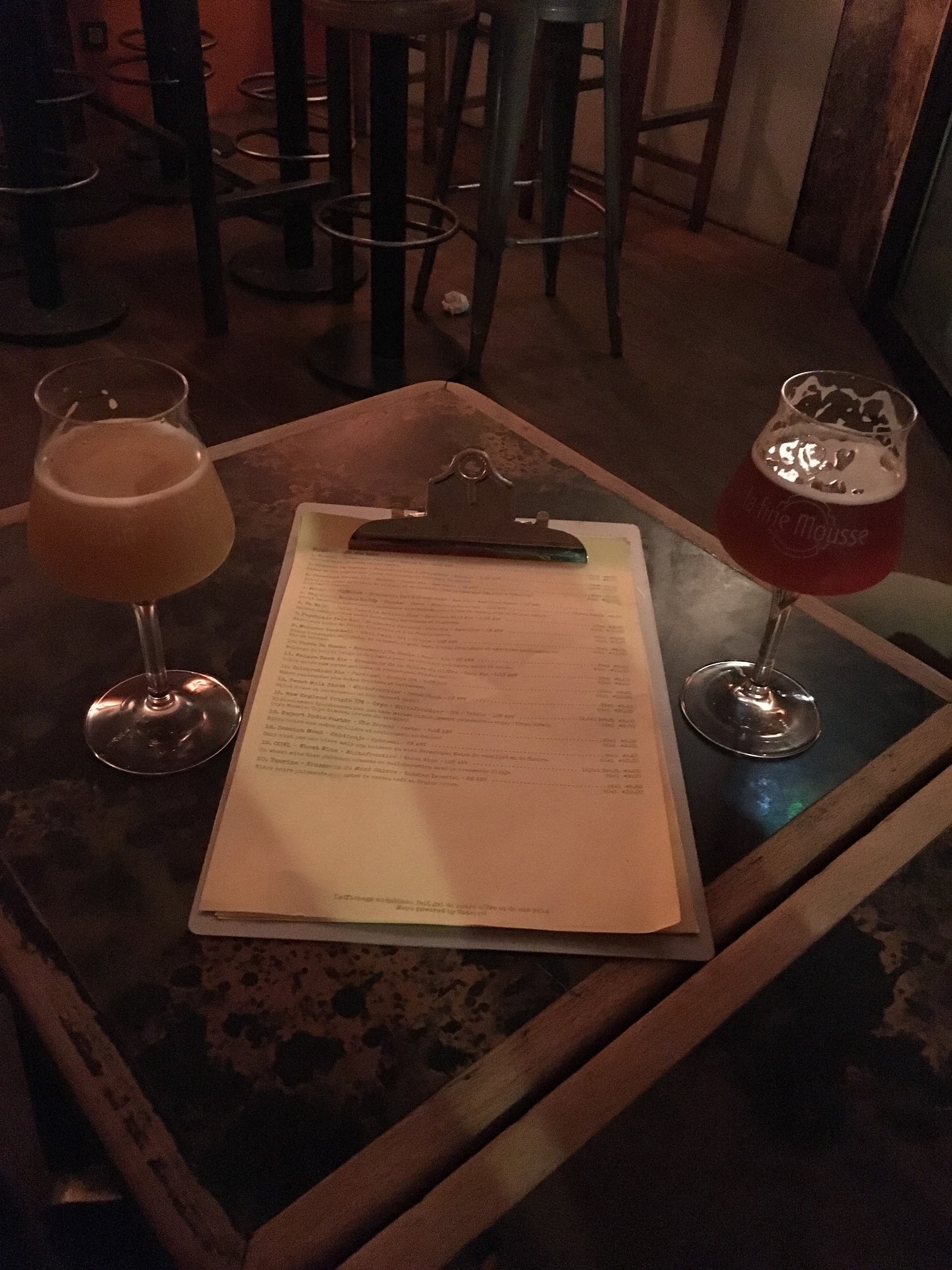 Nous étions de passage à Paris jeudi, une adresse que j'avais en tête depuis longtemps. J'imagine qu'il y a eu quelques changements ces derniers mois en terme de carte pour le dîner etc...nous voudrions dire simplement merci à Thomas qui a pris le temps de nous présenter les bières (un nombre incroyable de magnifiques références...), discuter avec nous malgré le fait qu'il soit seul ce soir là. Bière sommelier de formation, j'ai passé un super moment grâce à toi ! Mille merci et bon courage pour la suite. Nous espérons la prochaine fois découvrir les accords mets et bières proposés dernièrement.