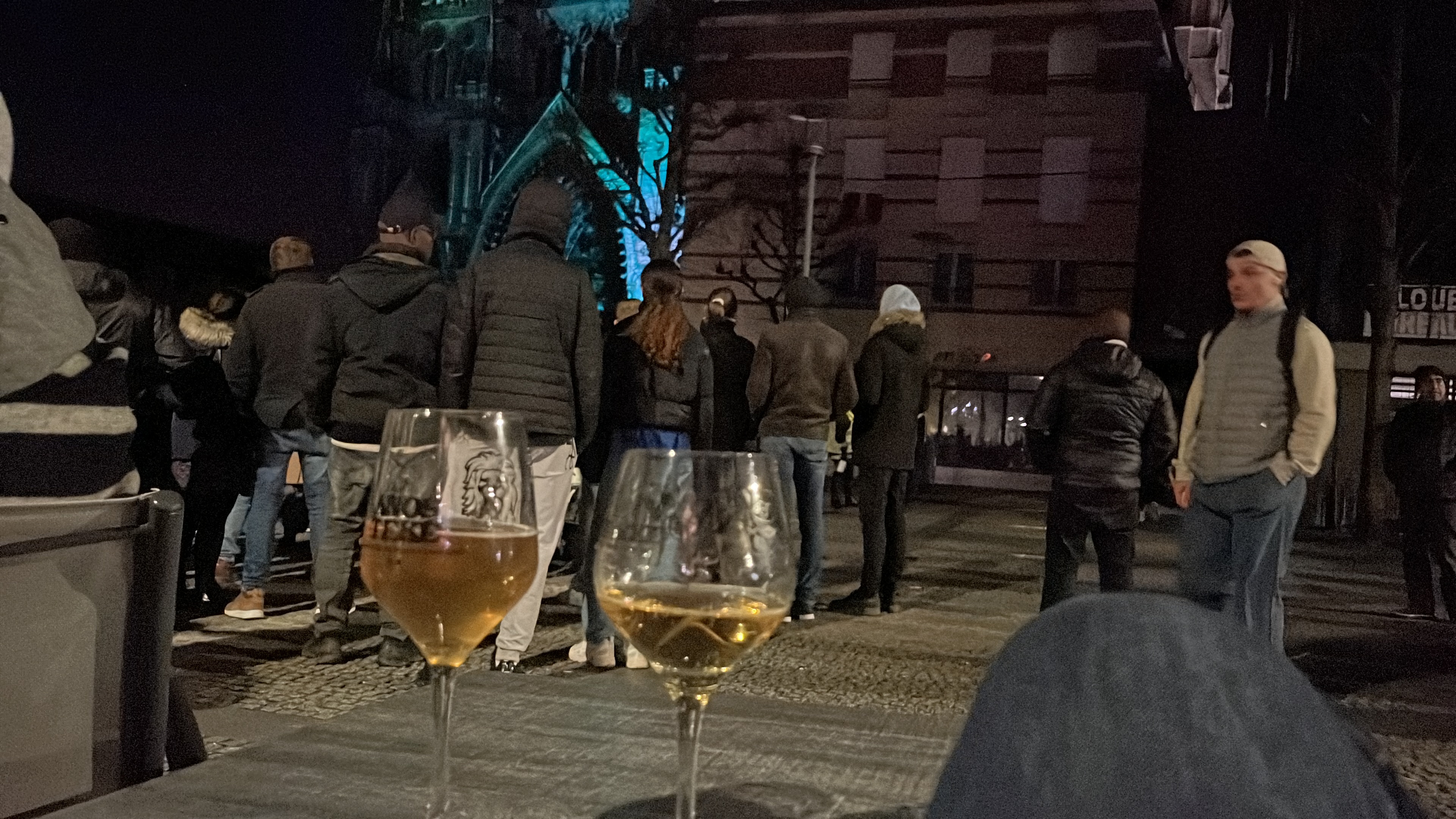 Personnel sympa Bières très bonnes Superbe emplacement pour le spectacle CHROMA, lumière sur la cathédrale
