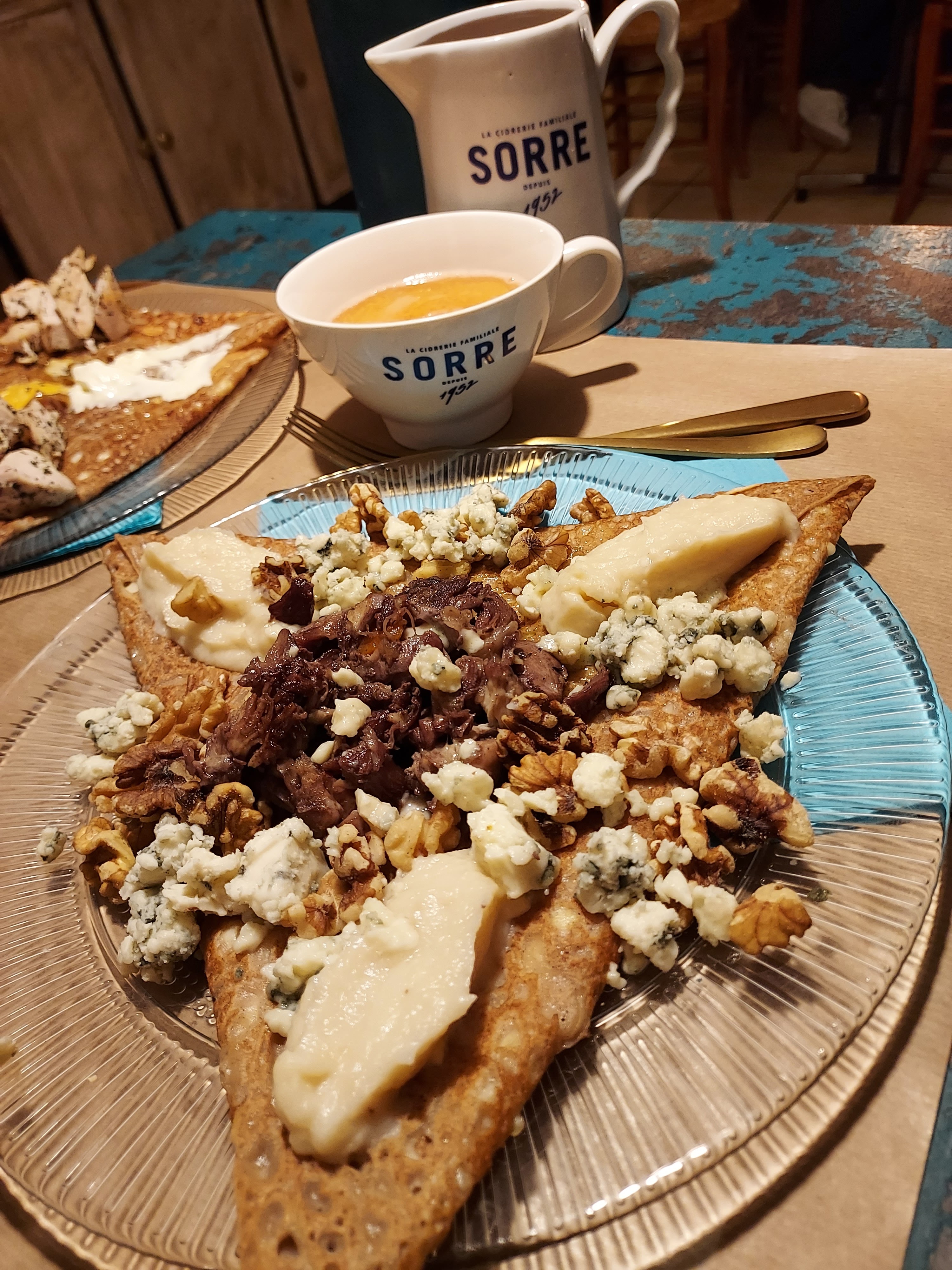 Galettes et crêpes excellentes. Très bon choix de cidres (Sorre Extra brut élevé en barriques sur les galettes vaut le détour). Service adorable et bonne humeur au rendez-vous. C'était tout ce qu'il nous fallait ce soir, parfait !