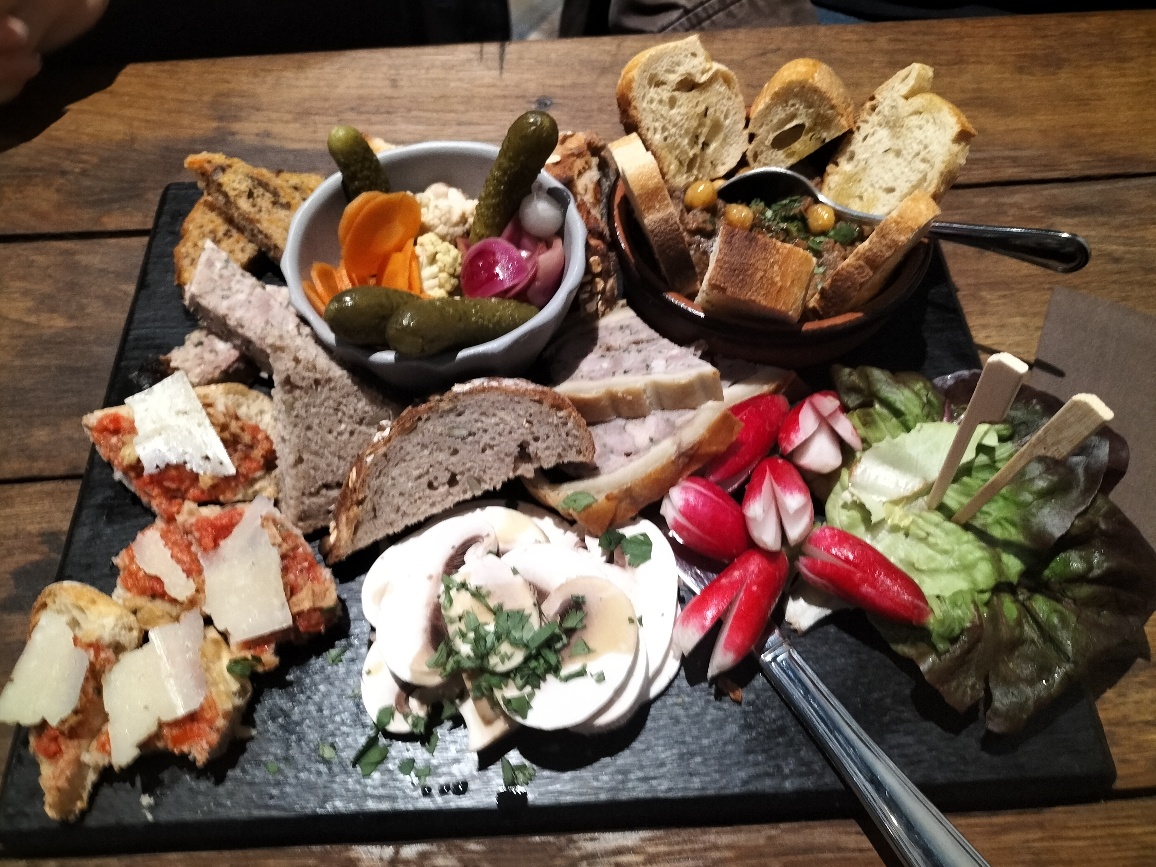 Endroit chaleureux, nous avons pris une planche decouverte et cela en a été une excellente. Très bon, des produits de qualité, du bon vin, des bons soft. Le service est au top.