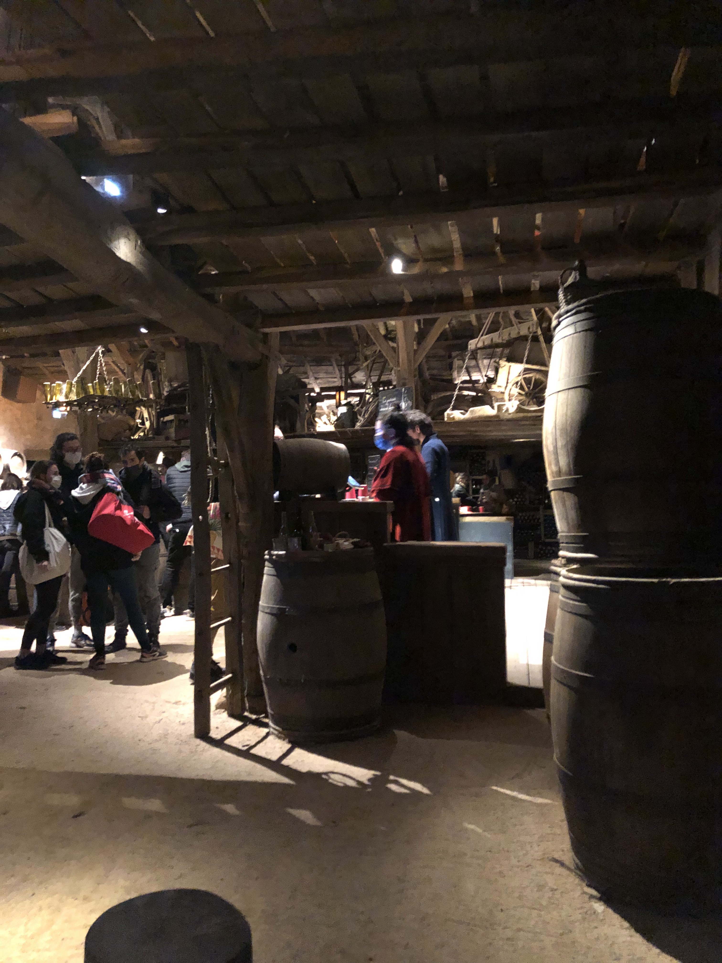 Bar a vin au style d'une taverne du XVIII ème siècle, situé dans une grange. Décoration assez chargée visuellement qui ne porte pas vraiment sur l'époque. Choix assez importants de vins et quelques planches apéritifs a disposition, mais des prix assez élèves pour la quantité.