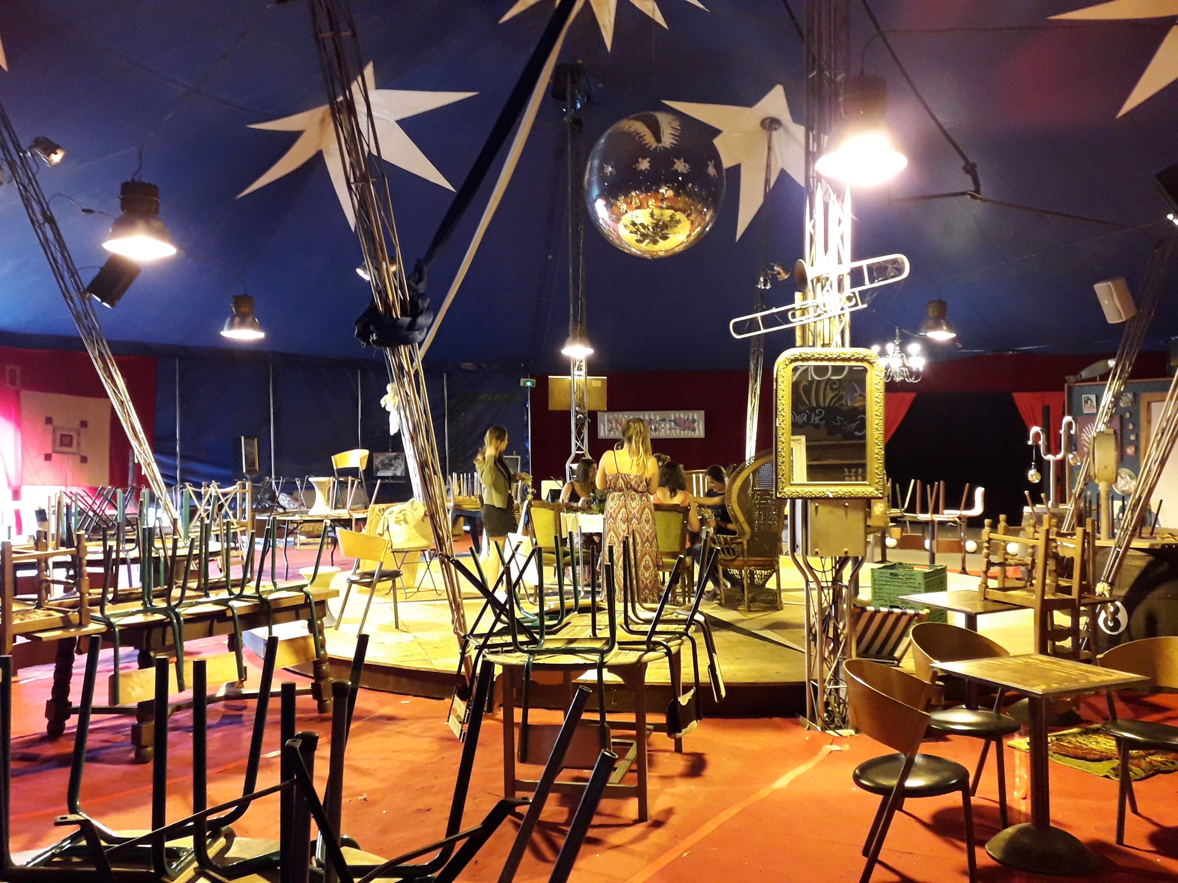 Joyeux bazar de poètes de saltimbanques d'enfants et d'adultes,sous les étoiles,le charme d'un chapiteau de cirque.bravo
